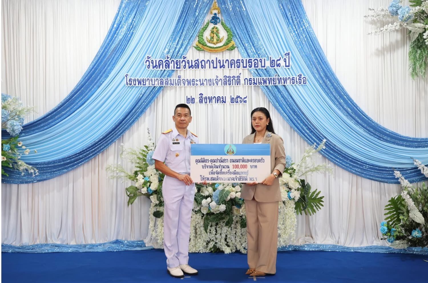 เมื่อ ๙ ก.ค.๖๘ บริษัท กรุงเทพ ซินธิติกส์ จำกัด (สาขา ๒) บริจาคเตียงไฟฟ้าสำหรับทำหัตถการทางหัวใจ มูลค่า ๓๐๐,๐๐๐ บาท ให้ รพ.สมเด็จพระนางเจ้าสิริกิติ์ พร. โดยมี พล.ร.ต.พัฒนชัย เฉลิมวรรณ์ ผอ.รพ.สมเด็จพระนางเจ้าสิริกิติ์ พร. เป็นผู้รับมอบ ข่าวผู้บังคับบัญชา 14 กรกฎาคม 2568