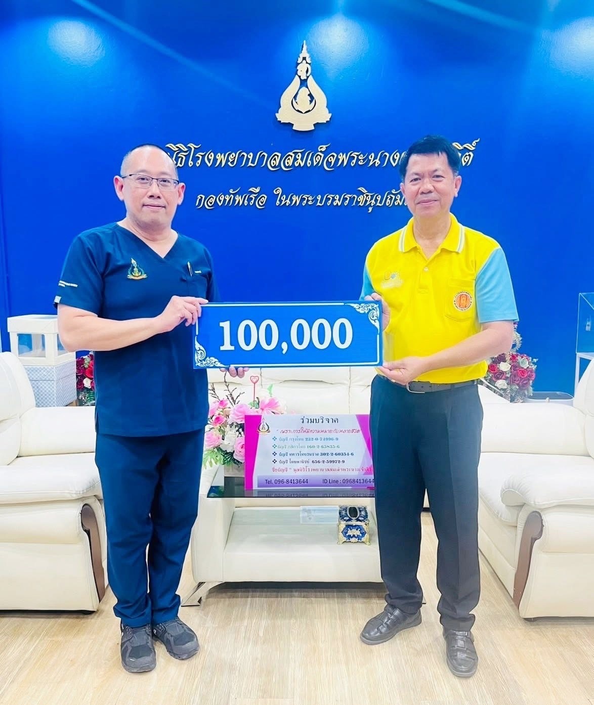 เมื่อ ๒๒ พ.ค.๖๘ คุณสิริรักษ์ โสธนะ บริจาคเงิน จำนวน ๑๐๐,๐๐๐ บาท เพื่อจัดซื้อเครื่องมือแพทย์ให้ห้องตรวจโรคหัวใจ รพ.สมเด็จพระนางเจ้าสิริกิติ์ พร. โดยมี พล.ร.ต.พัฒนชัย เฉลิมวรรณ์ ผอ.รพ.สมเด็จพระนางเจ้าสิริกิติ์ พร. เป็นผู้รับมอบ ณ หอผู้ป่วยอายุรเวชกรรมหญิง รพ.ฯ ข่าวผู้บังคับบัญชา 26 พฤษภาคม 2568