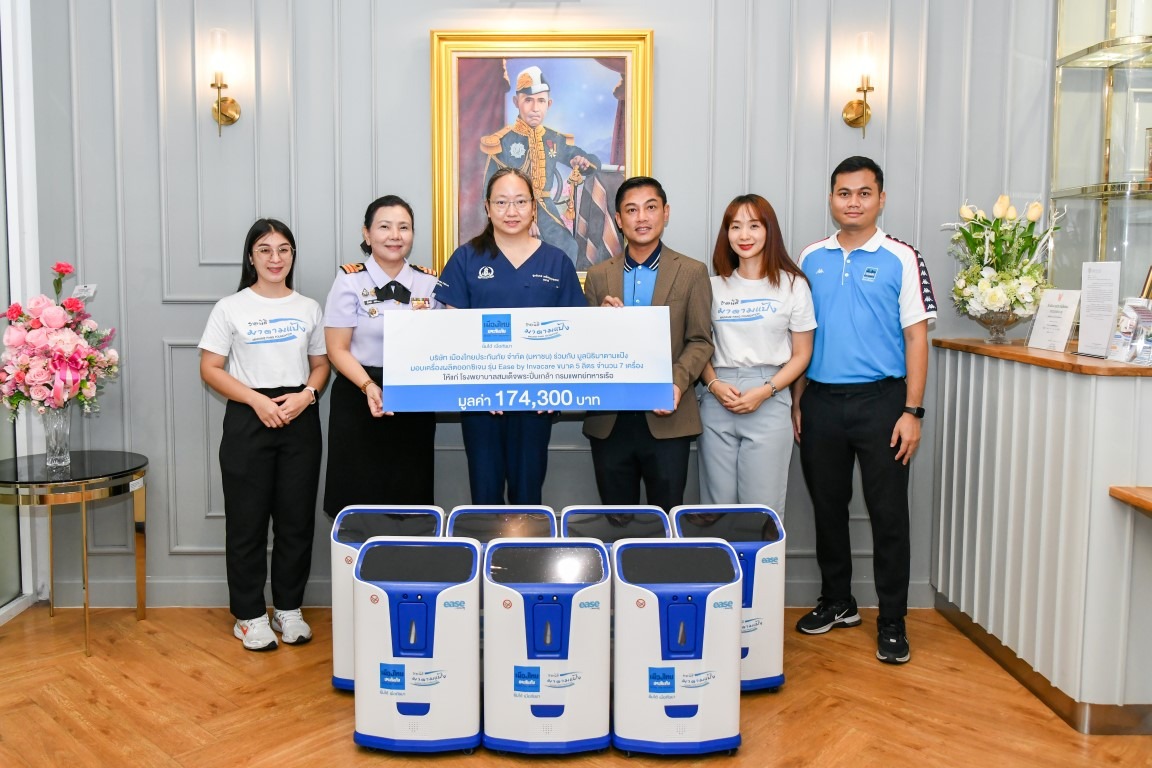 เมื่อ ๒๗ พ.ค.๖๘ บริษัท เมืองไทยประกันภัย จำกัด (มหาชน) ร่วมกับ มูลนิธิมาดามแป้ง มอบเครื่องผลิตออกซิเจน รุ่น Ease by Invacare ขนาด ๕ ลิตร จำนวน ๗ เครื่อง มูลค่ารวม ๑๗๔,๓๐๐ บาท ให้ศูนย์ปันน้ำใจแพทย์นาวี รพ.สมเด็จพระปิ่นเกล้า พร. เพื่อสนับสนุนงานดูแลผู้ป่วยและผู้สูงอายุต่อเนื่องที่บ้าน โดยมี น.อ.หญิง ลูกจันทร์ เหรียญสุวรรณ ผอ.ศูนย์รับบริจาค รพ.ฯ และ น.ท.หญิง เย็นฤดี เสตะกสิกร รอง ผอ.ศูนย์รับบริจาค รพ.ฯ เป็นผู้รับมอบ ณ สำนักงานมูลนิธิสมเด็จพระปิ่นเกล้า ชั้น ๑ อาคารพิเคราะห์และบำบัดโรค รพ.ฯ ข่าวผู้บังคับบัญชา 29 พฤษภาคม 2568