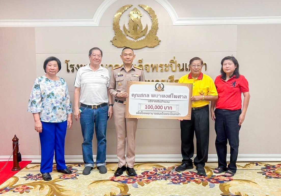 เมื่อ ๔ มิ.ย.๖๘ คุณสกล พนาพงศ์ไพศาล มอบเงินบริจาคจำนวน ๑๐๐,๐๐๐ บาท สมทบทุนโครงการทอดผ้าป่ามหากุศล เพื่อจัดซื้อเครื่องมือแพทย์ รพ.สมเด็จพระปิ่นเกล้า พร. โดยมี พล.ร.ต.สมชาย จันทโรธร ผอ.รพ.สมเด็จพระปิ่นเกล้า พร. เป็นผู้รับมอบ ณ ห้องรับรอง สำนักงานผู้อำนวยการ รพ.ฯ ข่าวผู้บังคับบัญชา 9 มิถุนายน 2568