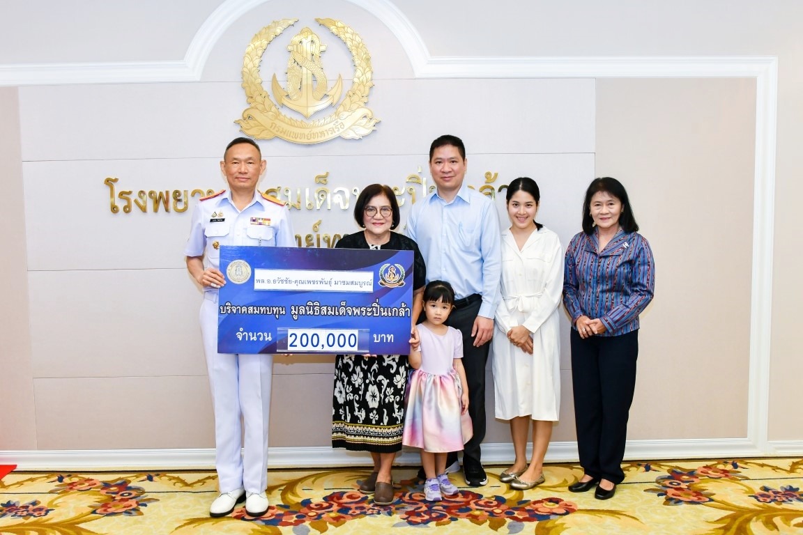 เมื่อ ๒๕ เม.ย.๖๘ น.อ.หญิง ชมภูนุช เพชรเสนา และคุณพุทธชาติ เพชรเสนา มอบเงินบริจาคในนาม พล.อ. ธวัชชัย – คุณเพชรพันธุ์ มาชมสมบูรณ์ (เพชรเสนา) จำนวน ๒๐๐,๐๐๐ บาท สมทบทุนมูลนิธิสมเด็จพระปิ่นเกล้า โดยมี พล.ร.ต.สมชาย จันทโรธร ผอ.รพ.สมเด็จพระปิ่นเกล้า พร. เป็นผู้รับมอบ ณ ห้องรับรอง สำนักงานผอ.รพ.ฯ ข่าวผู้บังคับบัญชา 28 เมษายน 2568