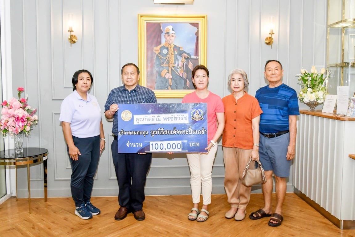 เมื่อ ๘ พ.ค.๖๘ คุณ กิตติณี พรชัยวิรัช มอบเงินบริจาคจำนวน ๑๐๐,๐๐๐ บาท สมทบทุนมูลนิธิสมเด็จพระปิ่นเกล้า โดยมี พล.ร.ต.เฉียบ สหัสสานนท์ ที่ปรึกษาด้านการเงินมูลนิธิสมเด็จพระปิ่นเกล้า และ น.ต.หญิง สรวงสุดา แนวจิตร รอง หน.สำนักงานมูลนิธิฯ เป็นผู้รับมอบ ณ สนง.มูลนิธิสมเด็จพระปิ่นเกล้า ชั้น ๑ อาคารพิเคราะห์และบำบัดโรค รพ.ฯ ข่าวผู้บังคับบัญชา 13 พฤษภาคม 2568