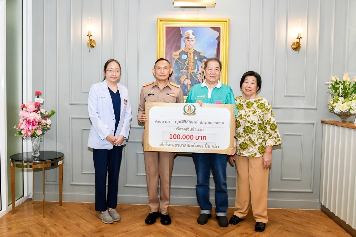 เมื่อ ๑๔ พ.ค.๖๘ คุณมานะ – คุณศิริลักษณ์ สถิตทรงธรรม มอบเงินบริจาคจำนวน ๑๐๐,๐๐๐ บาท สมทบทุนโครงการทอดผ้าป่ามหากุศล เพื่อจัดซื้อเครื่องมือแพทย์ รพ.สมเด็จพระปิ่นเกล้า โดยมี พล.ร.ต.สมชาย จันทโรธร ผอ.รพ.สมเด็จพระปิ่นเกล้า พร. และ น.อ.หญิง ลูกจันทร์ เหรียญสุวรรณ ผอ.ศูนย์รับบริจาค รพ.ฯ เป็นผู้รับมอบ ณ สนง.มูลนิธิสมเด็จพระปิ่นเกล้า ชั้น ๑ อาคารพิเคราะห์และบำบัดโรค รพ.ฯ ข่าวผู้บังคับบัญชา 16 พฤษภาคม 2568