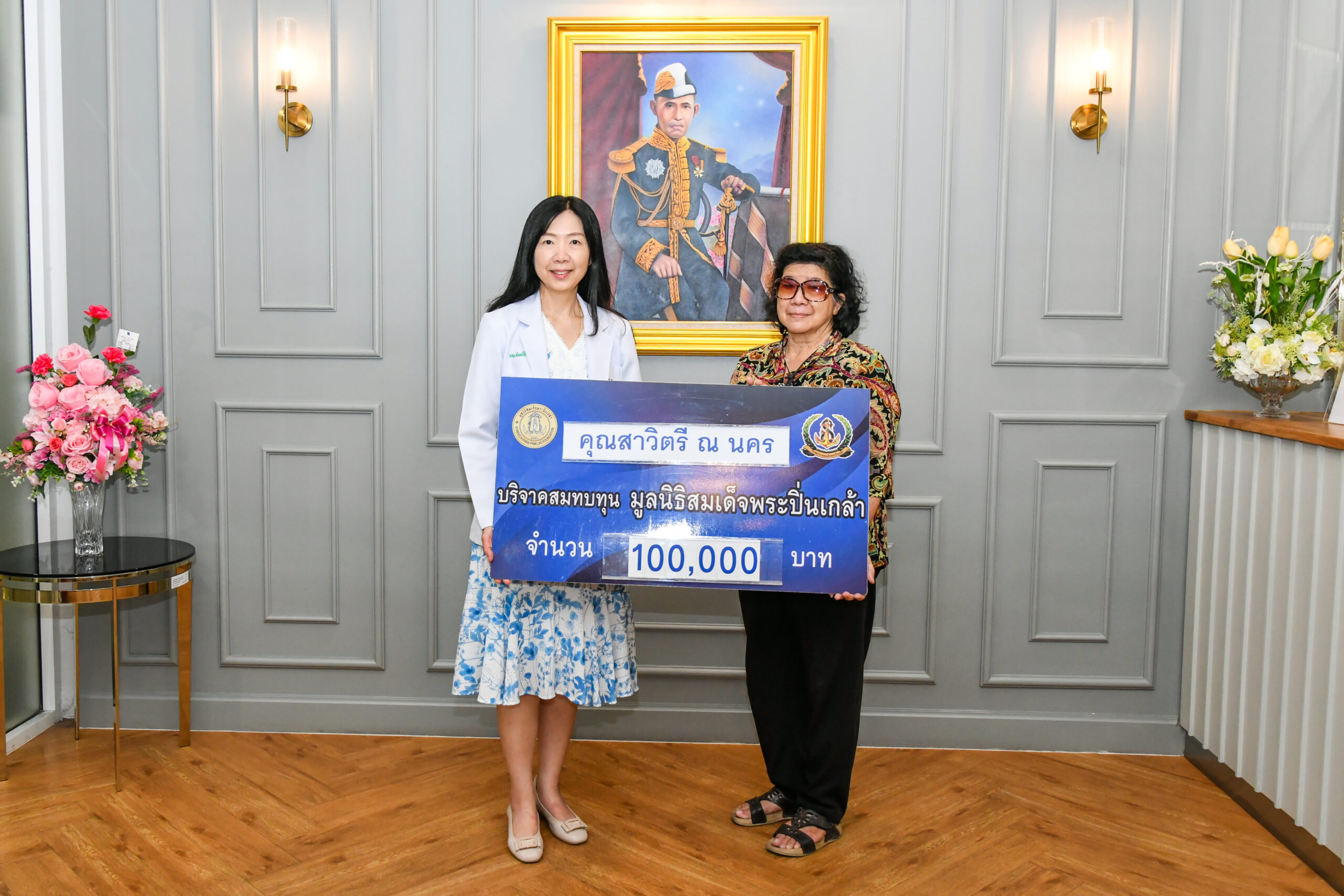 เมื่อ ๑๑ เม.ย.๖๘ คุณสาวิตรี ณ นคร มอบเงินบริจาคจำนวน ๑๐๐,๐๐๐ บาท สมทบทุนมูลนิธิสมเด็จพระปิ่นเกล้า โดยมี น.อ.หญิง พิมพ์สิริ ชมะนันทน์ รอง ผอ.รพ.สมเด็จพระปิ่นเกล้า พร. ฝ่ายบริการสุขภาพ เป็นผู้รับมอบ ณ สำนักงานมูลนิธิสมเด็จพระปิ่นเกล้า อาคารพิเคราะห์และบำบัดโรค ชั้น ๑ รพ.สมเด็จพระปิ่นเกล้า พร. ข่าวผู้บังคับบัญชา 11 เมษายน 2568