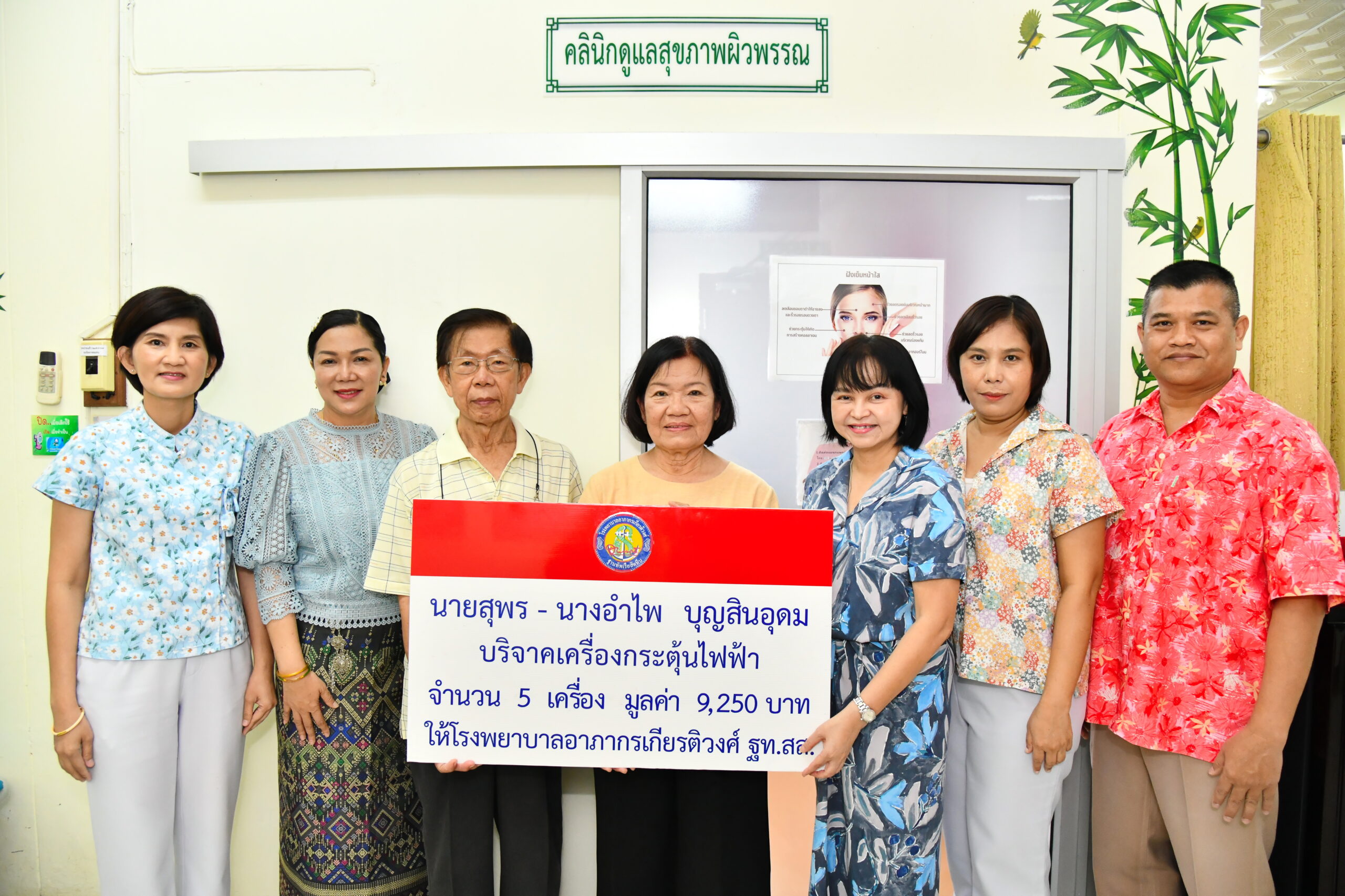 เมื่อ ๙ เม.ย.๖๘ นายสุพร – นางอำไพ บุญสินอุดม มอบเครื่องกระตุ้นไฟฟ้า จำนวน ๕ เครื่อง มูลค่า ๙,๒๕๐ บาท เพื่อมอบให้แก่แผนกแพทย์แผนจีน รพ.ฯ โดยมี น.อ.หญิง บุญรักษา งามศิลป์ หน.กองการแพทย์ทางเลือก รพ.อาภากรเกียรติวงศ์ ฐท.สส. เป็นผู้รับมอบ ณ แผนกแพทย์แผนจีน รพ.อาภากรเกียรติวงศ์ ฐท.สส. ข่าวผู้บังคับบัญชา 9 เมษายน 2568
