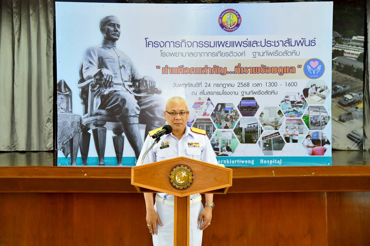 เมื่อ ๒๔ ก.ค.๖๘ พล.ร.ต.ชาตรี เปี่ยมศิริ ผอ.รพ.อาภากรเกียรติวงศ์ ฐท.สส. เป็นประธานพิธีเปิดโครงการกิจกรรมประชาสัมพันธ์ รพ.ฯ นอกหน่วย ในชื่อโครงการ “ท่านคือคนสำคัญ…ที่เราพร้อมดูแล” ณ สโมสรกรมโรงงาน ฐท.สส. ข่าวผู้บังคับบัญชา 29 กรกฎาคม 2568