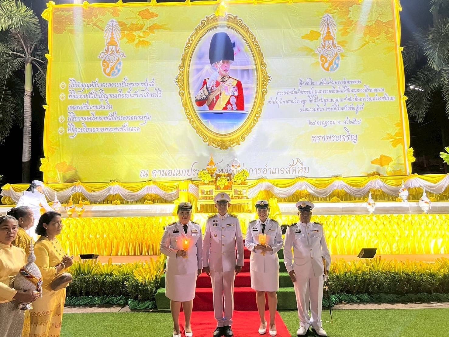 เมื่อ ๒๘ ก.ค.๖๘ น.อ.หญิง สุมาลี ไวยเนตร ผช.ผอ.รพ.สมเด็จพระนางเจ้าสิริกิติ์ พร. ฝ่ายการพยาบาล ๑ ผู้แทน ผอ.รพ.ฯ พร้อมด้วยกำลังพล รพ.ฯ ร่วมกิจกรรมเฉลิมพระเกียรติพระบาทสมเด็จพระเจ้าอยู่หัวฯ เนื่องในโอกาสวันเฉลิมพระชนมพรรษา ๒๘ กรกฎาคม ๒๕๖๘ ซึ่งมีพิธีถวายเครื่องราชสักการะและวางพานพุ่ม พิธีจุดเทียนถวายพระพรชัยมงคล ณ บริเวณที่ว่าการอำเภอสัตหีบ อ.สัตหีบ จว.ชลบุรี ข่าวผู้บังคับบัญชา 1 สิงหาคม 2568
