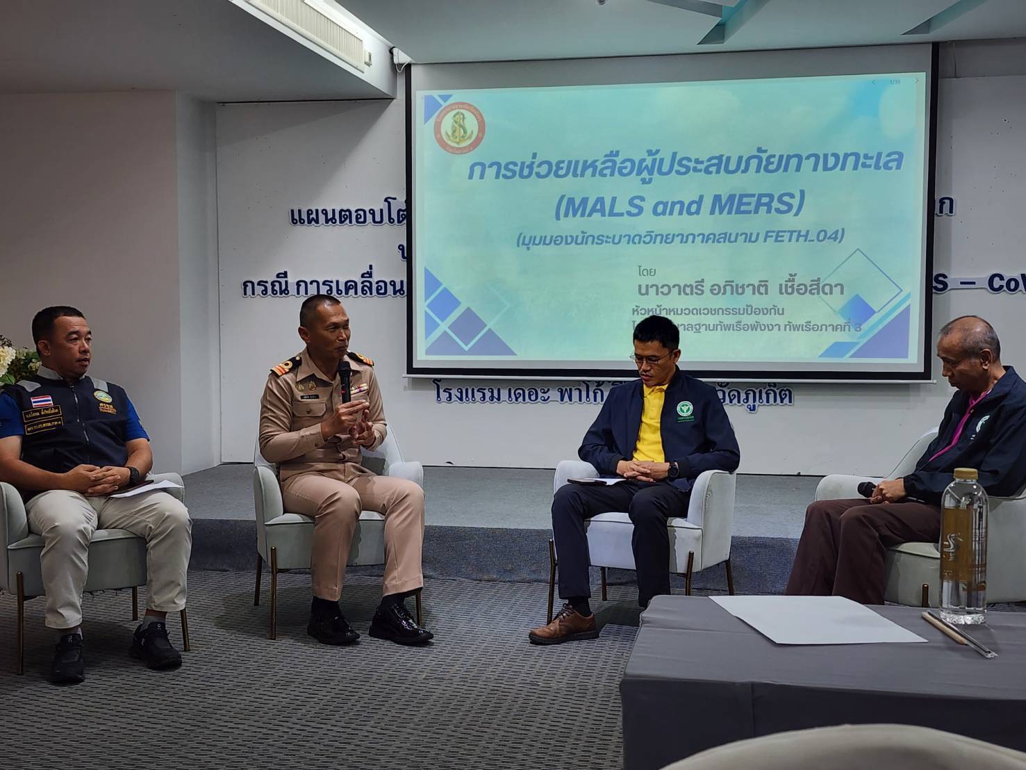 ระหว่าง ๒๑-๒๒ ก.ค.๖๘ น.ต.อภิชาติ เชื้อสีดา เป็นผู้แทน ผอ.รพ.ฐท.พง.ทรภ.๓ และคณะฯ ร่วมฝึกซ้อมแผนรองรับภาวะฉุกเฉินทางด้านสาธารณสุข กรณีพบผู้ป่วยเข้าข่ายโรค MERS ในเรือขนส่งสินค้า ที่เดินทางมาจากประเทศอิหร่าน จัดโดย ด่านควบคุมโรคติดต่อระหว่างประเทศท่าเรือภูเก็ต โดยมี หน่วยงานที่เกี่ยวข้องเข้าร่วมการฝึก ได้แก่ ศรชล.ภาคที่ ๓ เรือ ต.๒๗๒ สำนักงานสาธารณสุข จว.ภูเก็ต รพ.วชิระภูเก็ต สำนักงานตรวจคนเข้าเมืองภูเก็ต รพ.ส่งเสริมสุขภาพตำบลวิชิต ณ โรงแรม เดอะ พาโก้ ดีไซด์ ภูเก็ต และ ท่าเรือน้ำลึก จว.ภูเก็ต ข่าวผู้บังคับบัญชา 25 กรกฎาคม 2568