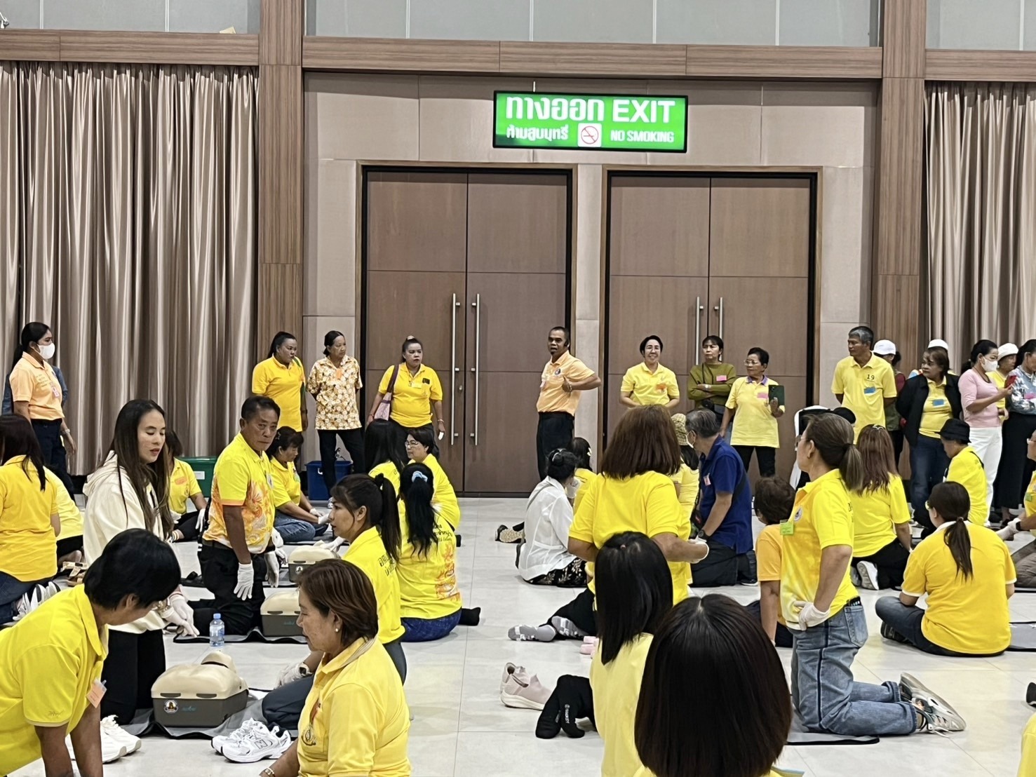 เมื่อ ๒๒ ก.ค.๖๘ กองนาวิกเวชกิจ รพ.อาภากรเกียรติวงศ์ ฐท.สส. สนับสนุนวิทยากรบรรยายให้ความรู้และฝึกอบรมการปฐมพยาบาล การช่วยฟื้นคืนชีพขั้นพื้นฐาน (CPR) และการใช้เครื่องฟื้นคืนคลื่นหัวใจด้วยไฟฟ้าแบบอัตโนมัติ (AED) ให้แก่ กำลังพลอาสาสมัครสาธารณสุขประจำหมู่บ้านและประชาชนทั่วไปที่เข้ารับการอบรมโครงการสุขภาพดี สู่วิถีสมุทรปราการ ประจำปี ๒๕๖๘ รุ่นที่ ๔ ณ สวนนงนุชพฤกษาศาสตร์ จว.ชลบุรี ข่าวผู้บังคับบัญชา 25 กรกฎาคม 2568