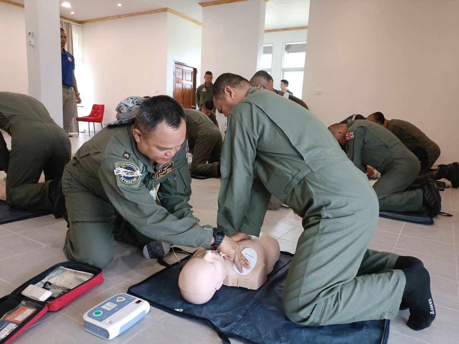 เมื่อ ๘ ก.ค.๖๘ รพ.ฐท.พง. ทรภ.๓ จัดการฝึกอบรมการปฐมพยาบาลการกู้ชีพขั้นพื้นฐาน (CPR) และการใช้เครื่อง AED ให้แก่ กำลังพล มวบ.กปก.ทรภ.๓ เพื่อทบทวนความรู้และเพิ่มพูนทักษะฯ ณ อาคารรับรอง มวบ.กปก.ทรภ.๓ ข่าวผู้บังคับบัญชา 8 กรกฎาคม 2568
