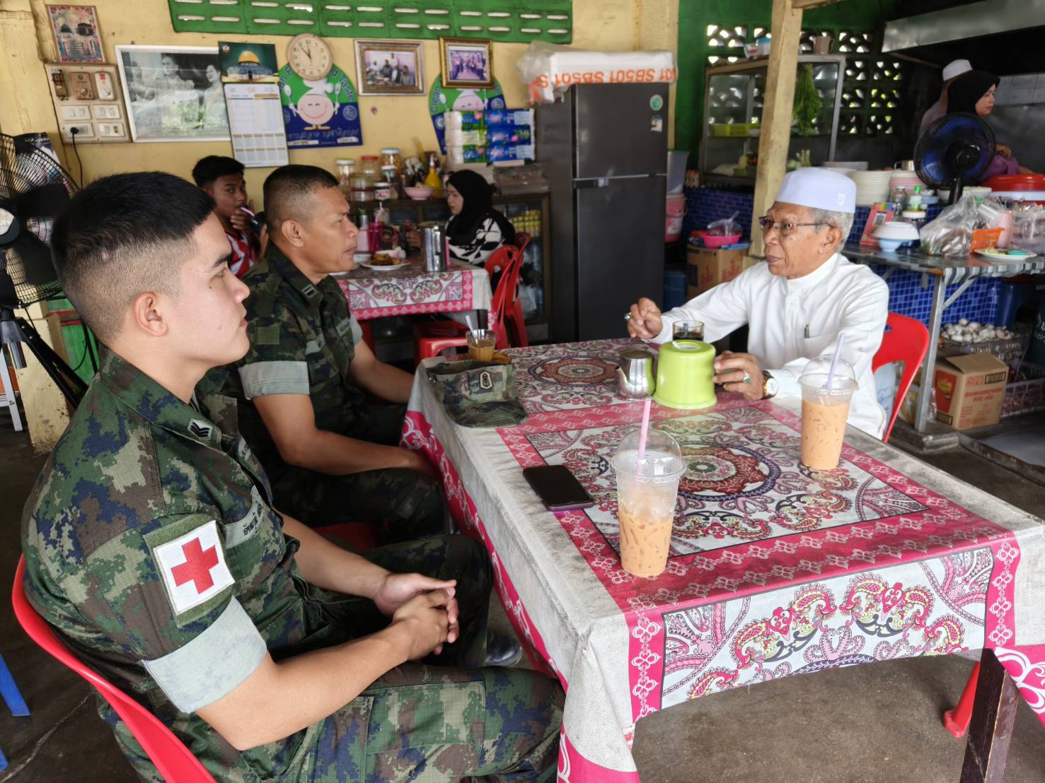 เมื่อ ๕ มิ.ย.๖๘ ร.ท.สัญญา คำรัง รอง ผบ.ร้อย.ปืนเล็กที่ ๑ ฉก.นย.ทร.๓๓ พร้อมด้วย ชป.กร. พบปะเยี่ยมเยียน อิหม่ามมะยูโซะ มะ ประธานชุมชนตาบาฮีเล พบปะพูดคุยสร้างสัมพันธ์ที่ดีระหว่างผู้นำศาสนากับทหาร ณ ชุมชนตาบาฮีเล หมู่ที่ ๑ ต.เจ๊ะเห อ.ตากใบ จว.นราธิวาส ข่าวผู้บังคับบัญชา 10 มิถุนายน 2568