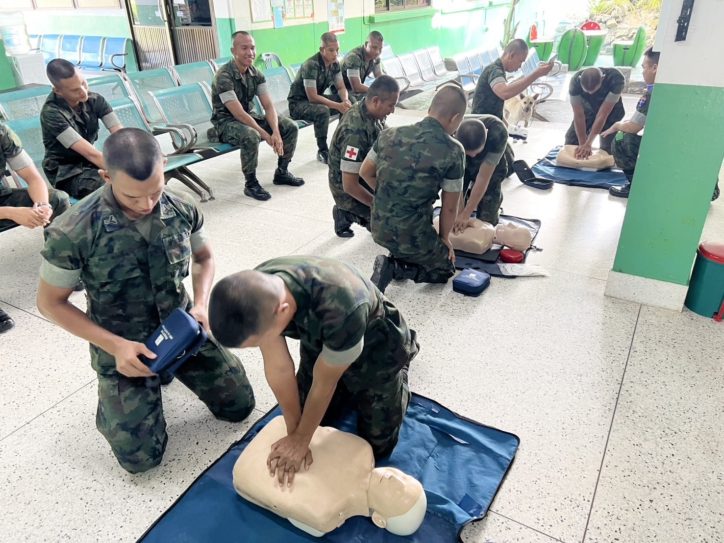 เมื่อ ๑๖ พ.ค.๖๘ ร.ท.มานะ จินดาศรี ผบ.ตอนพยาบาล ฉก.นย.ภต. พร้อม จนท.พยาบาล ดำเนินการจัดการฝึกอบรมการกู้ชีพขั้นพื้นฐาน (CPR) และการใช้เครื่องฟื้นคืนคลื่นหัวใจด้วยไฟฟ้าแบบอัตโนมัติ (AED) ให้แก่ข้าราชการ พัน.ร.๙ รอ.ฯ (จ่าตรีใหม่) จำนวน ๑๑ นาย ณ มว.พ.พัน.ร.๙ รอ.ฯ ค่ายจุฬาภรณ์ จว.นราธิวาส ข่าวผู้บังคับบัญชา 19 พฤษภาคม 2568
