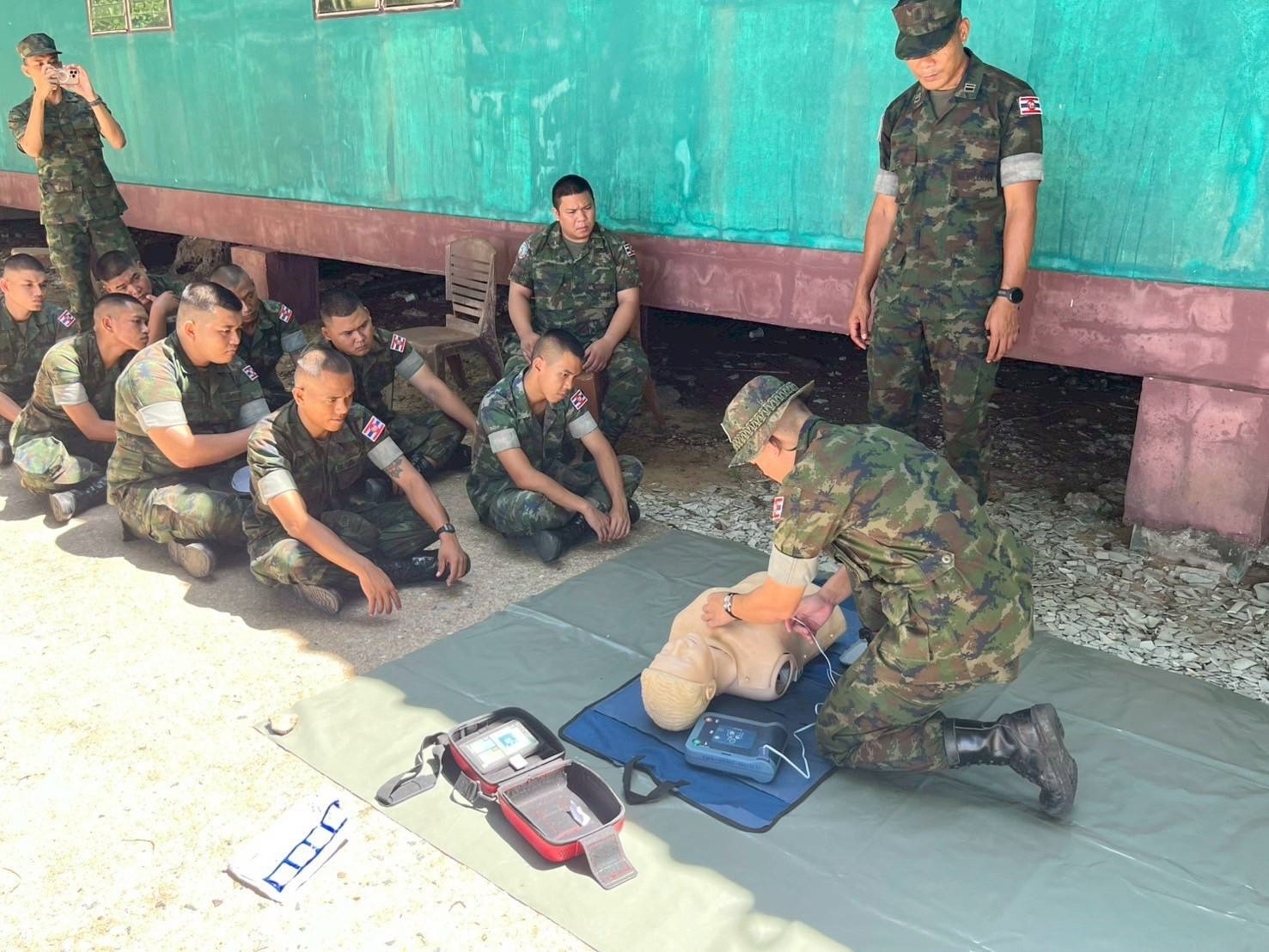 เมื่อ ๙ พ.ค.๖๘ ตอน พ.ฉก.นย.๑๘๒ ดำเนินการฝึกอบรมและให้ความรู้แก่กำลังพลสังกัด ฉก.นย.๑๘๒ (Unit School) เรื่อง การกู้ชีพขั้นพื้นฐาน (CPR) การใช้เครื่อง AED และการปฐมพยาบาลผู้ป่วยที่เกิดอันตรายจากความร้อนจากการปฏิบัติงานและการฝึก (Heat Injury ) ณ ตอน พ.ฉก.นย.๑๘๒ บ้านหาดเล็ก ต.หาดเล็ก อ.คลองใหญ่ จว.ตราด ข่าวผู้บังคับบัญชา 14 พฤษภาคม 2568