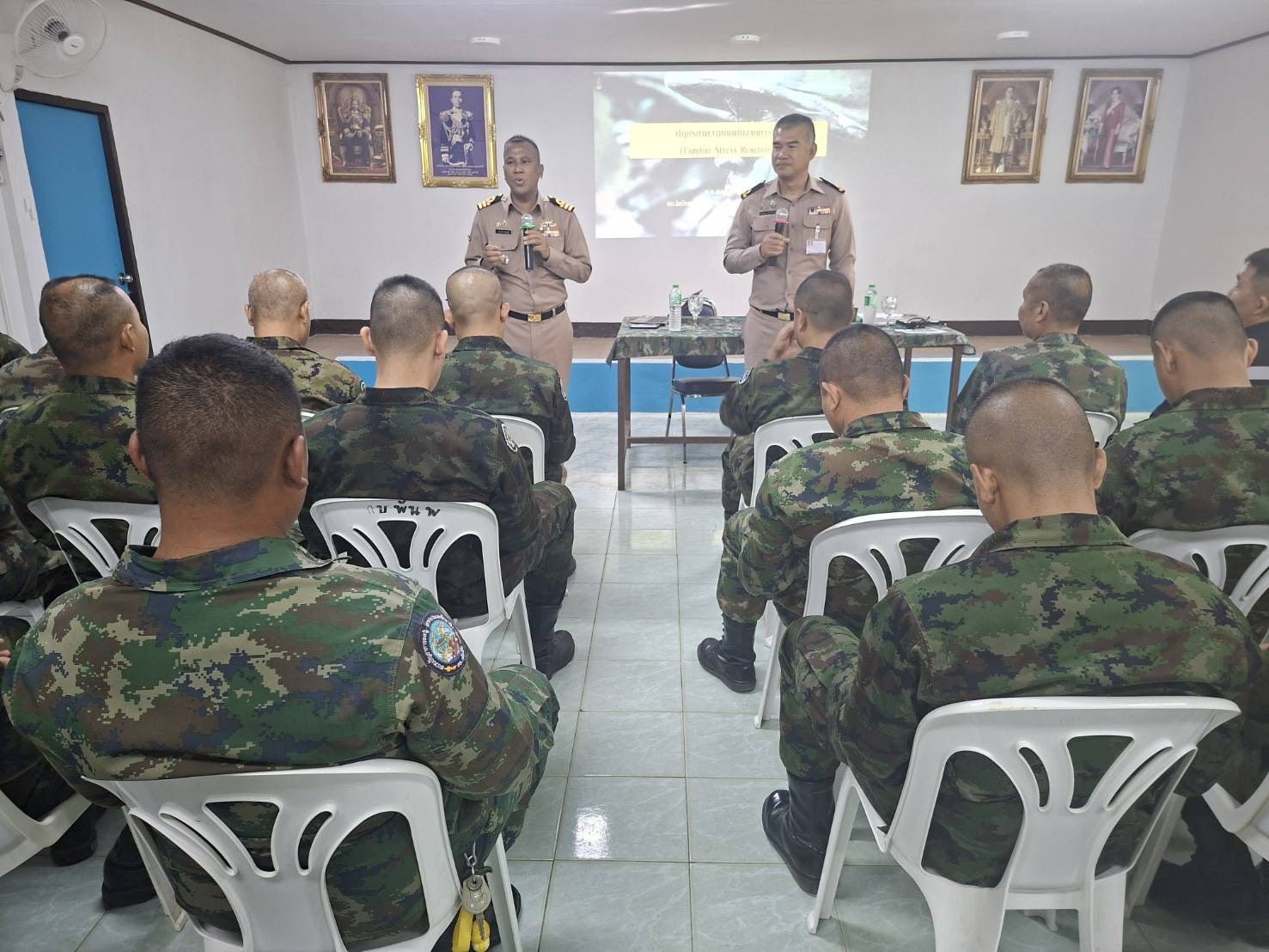 เมื่อ ๒๖ ม.ค.๖๙ น.ท.สมบูรณ์ ดอนสนธิ์ หัวหน้าแผนกจิตวิทยาทางการแพทย์ กองสุขภาพจิต รพ.อาภากรเกียรติวงศ์ ฐท.สส. ให้การสนับสนุน สอ.รฝ. ในการประเมินสุขภาพจิต และบรรยายให้ความรู้ เรื่องสุขภาพจิตทหาร เพื่อเตรียมความพร้อมกำลังพลชุดผลัดเปลี่ยนไปปฏิบัติราชการ ทภ.๒ และ กปช.จต. ห้วงเดือนกุมภาพันธ์ ๒๕๖๙ ณ พัน พ.กรม สน.สอ.รฝ. ข่าวผู้บังคับบัญชา 2 กุมภาพันธ์ 2569