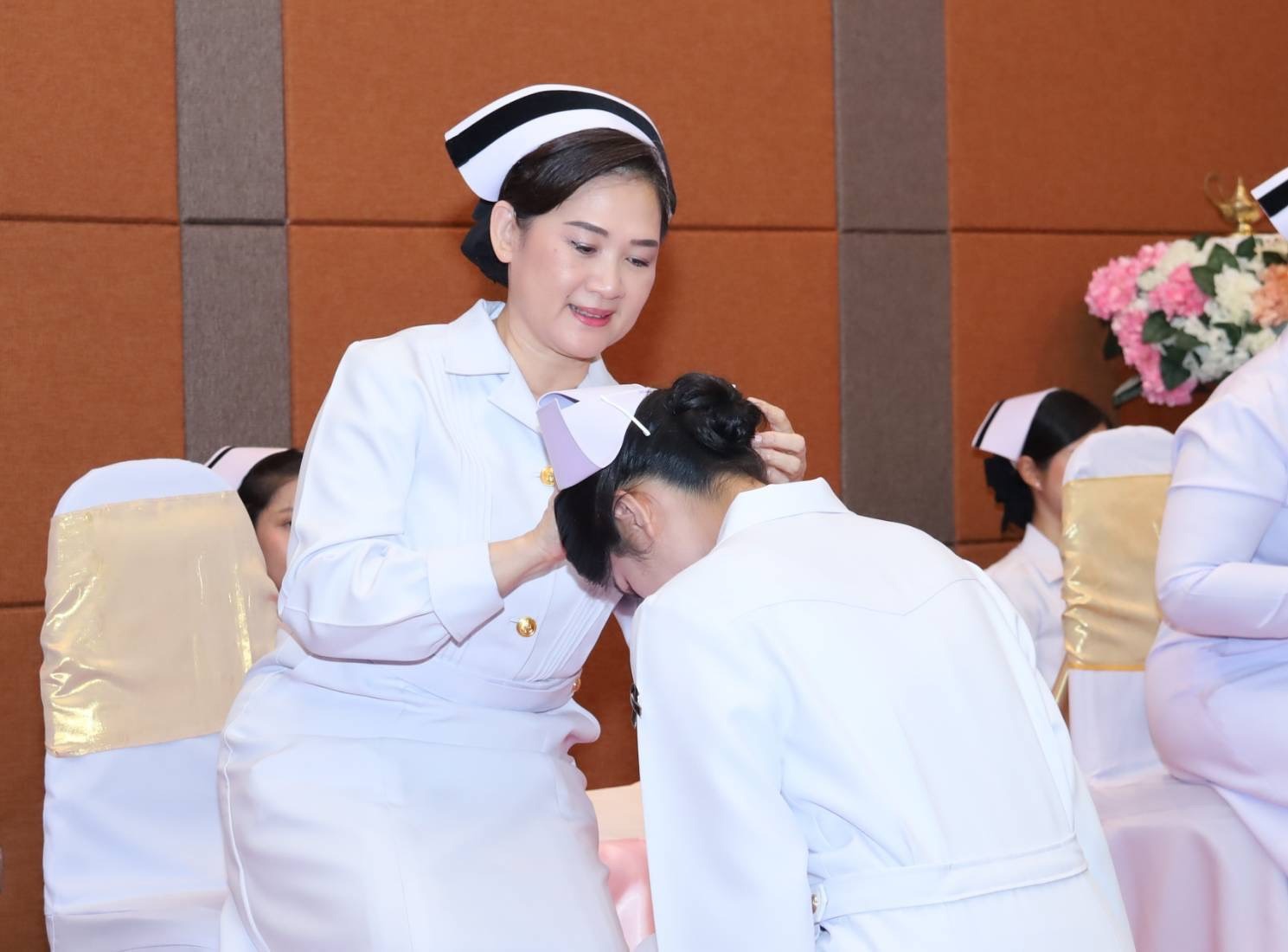 เมื่อ ๕ มี.ค.๖๙ น.อ.หญิง คณาลักษณ์ ดลเสมอ ผอ.วพร.ศวก.พร. เป็นประธานในพิธีมอบหมวกพยาบาลให้แก่นพร.ชั้นปีที่ ๒ รุ่นที่ ๕๔ จำนวน ๕๙ คน โดยมีคณะผู้บริหาร วพร. ร่วมประดับหมวก ณ ห้องประชุมพลเรือตรี เล็ก สุมิตร อาคารพิเคราะห์และบำบัดโรค รพ.สมเด็จพระปิ่นเกล้า พร. ข่าวผู้บังคับบัญชา 6 มีนาคม 2569