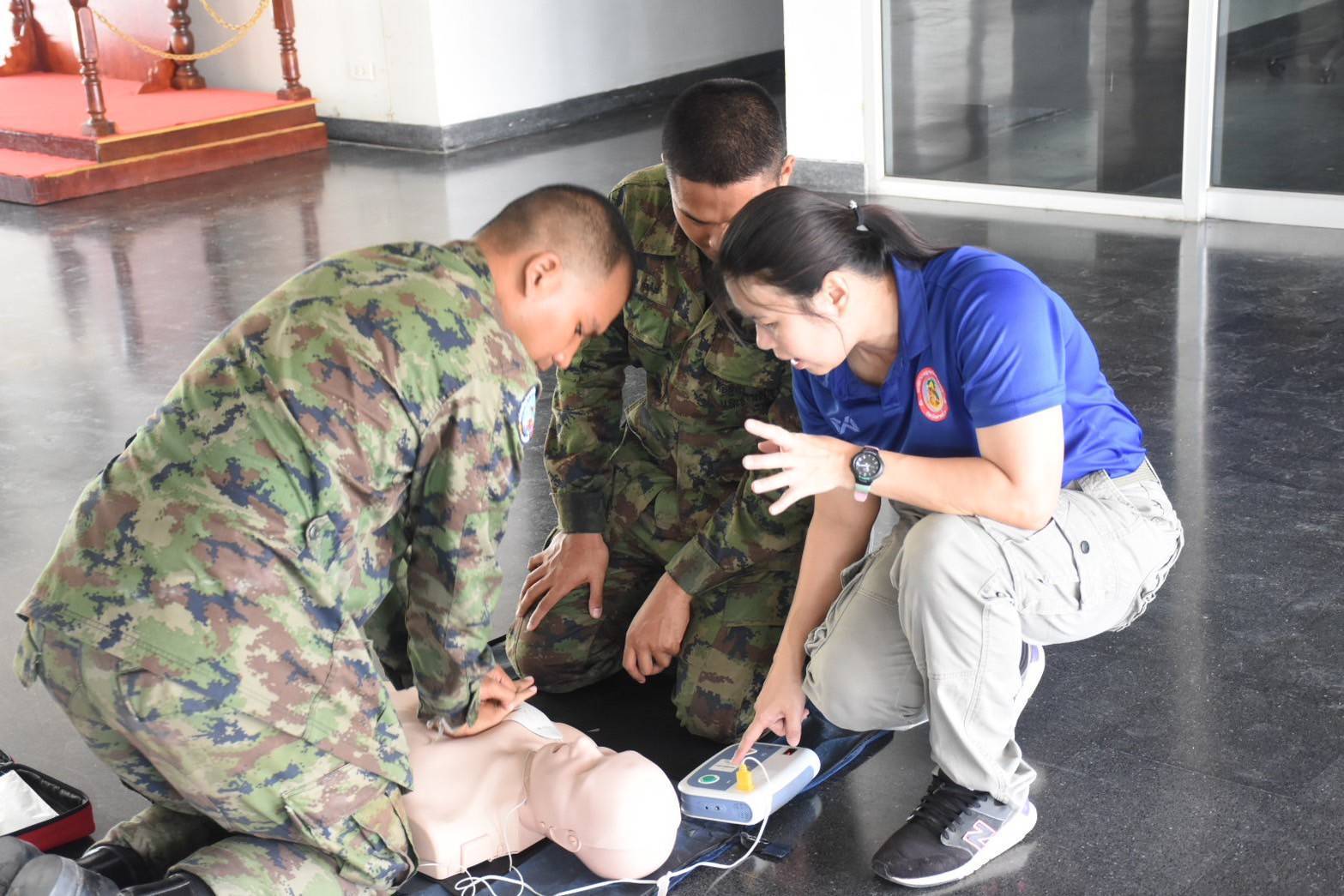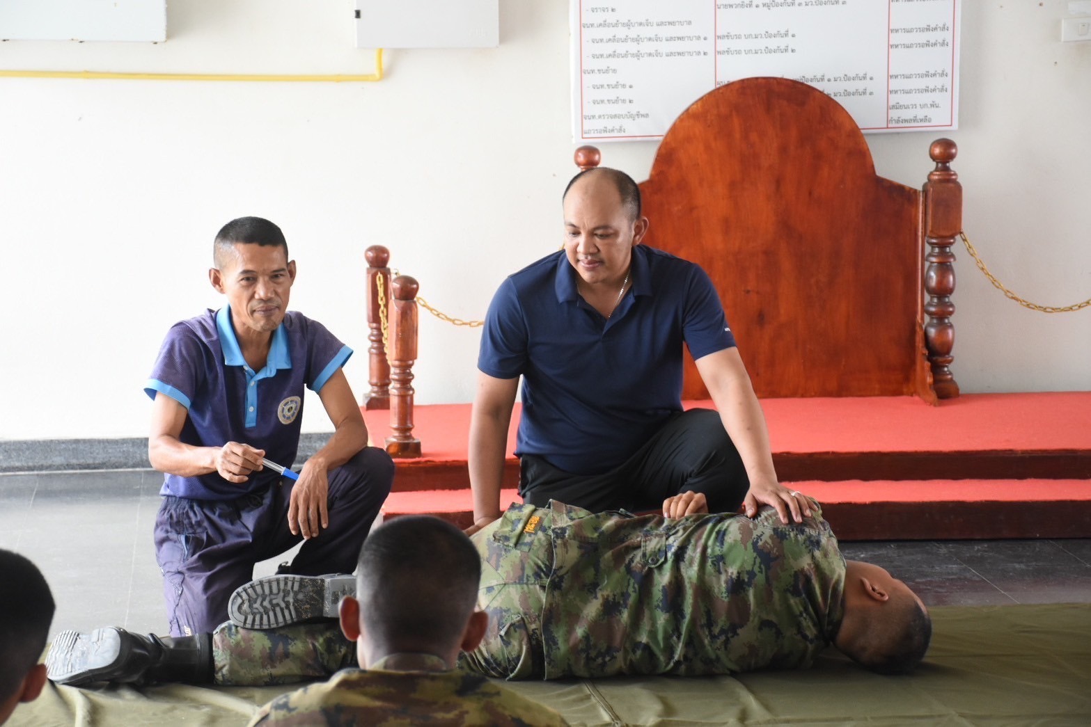 เมื่อ ๗ มี.ค.๖๘ รพ.ฐท.พง.ทรภ.๓ ดำเนินการฝึกอบรมการปฐมพยาบาล การกู้ชีพขั้นพื้นฐาน และการใช้เครื่องฟื้นคืนคลื่นหัวใจด้วยไฟฟ้าแบบอัตโนมัติ (AED) ให้แก่กำลังพล พัน รฝ.๑๑ ณ อาคาร บก.พัน รฝ.๑๑ กรม รฝ.๑๑ อ.ท้ายเหมือง จว.พังงา ข่าวผู้บังคับบัญชา 13 มีนาคม 2568