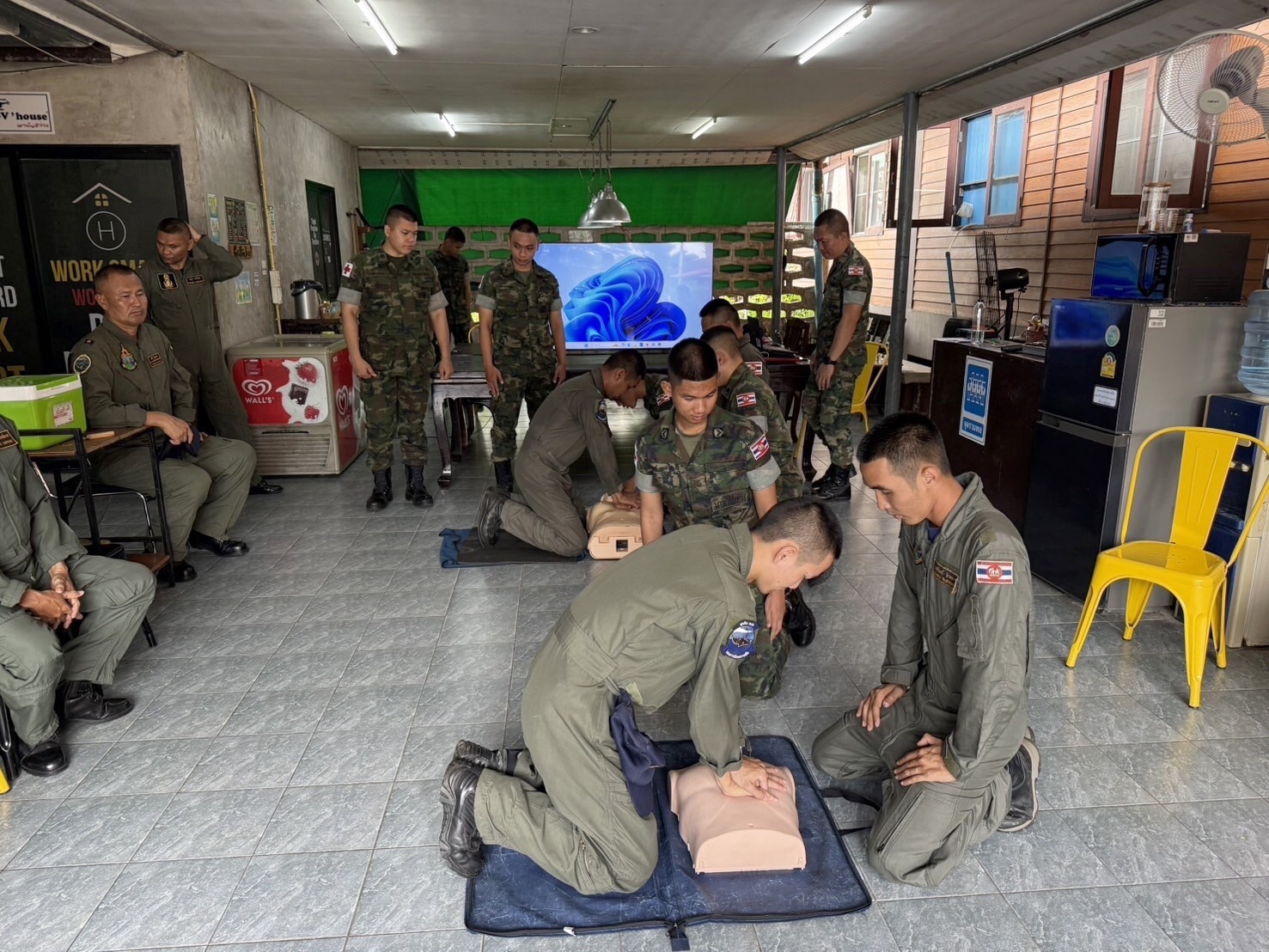 เมื่อ ๗ ต.ค.๖๘ ร้อย.พ.กอง สนช.กจต. ดำเนินการฝึกอบรม Unit School เกี่ยวกับการกู้ชีพขั้นพื้นฐาน (CPR) และการใช้เครื่องฟื้นคืนคลื่นหัวใจด้วยไฟฟ้าแบบอัติโนมัติ (AED) ให้แก่ กำลังพล มว.บิน ๔๑ กจต. ณ ฝูงบิน ๓๑๔๑ กจต. ข่าวผู้บังคับบัญชา 9 ตุลาคม 2568