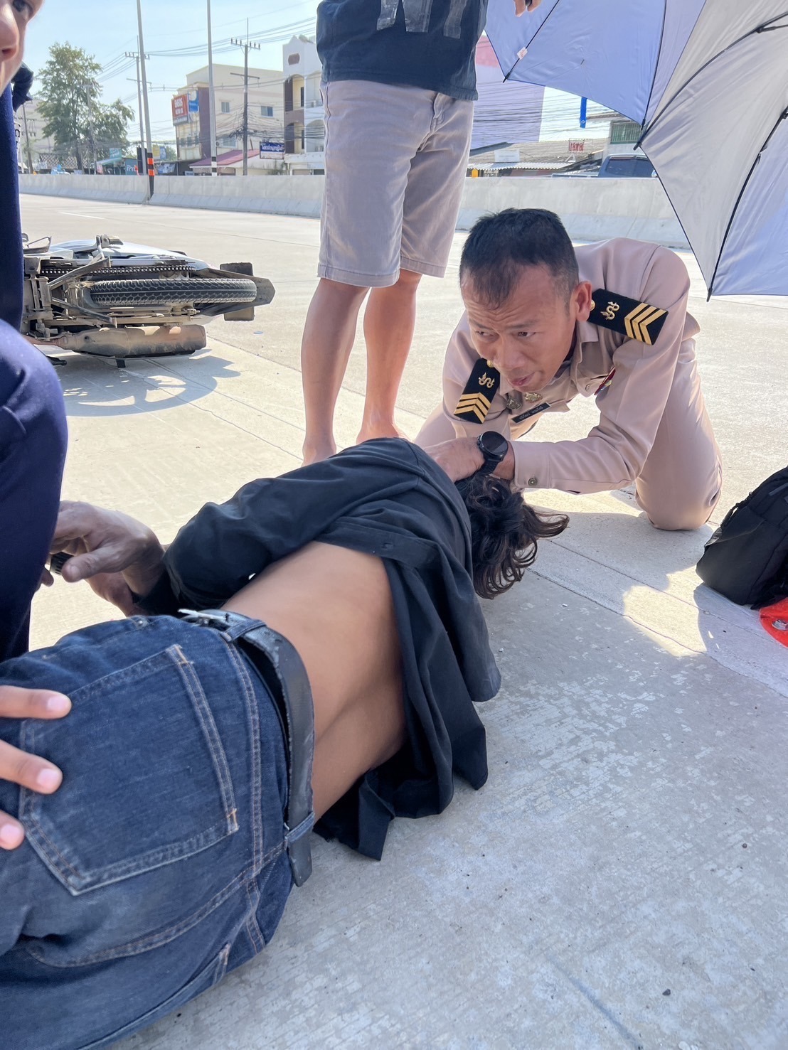 เมื่อ ๒๔ ธ.ค.๖๗ พ.จ.อ.อนิวัฒน์ พรมรังสี ช่วยราชการ กลุ่มงานสนับสนุนสายแพทย์ ๑ รพ.สมเด็จพระนางเจ้าสิริกิติ์ พร พบผู้ประสบอุบัติเหตุรถจักรยานยนต์ชนกัน บริเวณแยกเตาถ่าน ได้ทำการประเมินสภาพผู้บาดเจ็บเบื้องต้น ตรวจเช็คสติสัมปชัญญะ พร้อมทั้งให้การปฐมพยาบาลเบื้องต้น ระหว่างรอหน่วยกู้ภัยเดินทางมาถึงและรับตัวผู้บาดเจ็บนำส่งโรงพยาบาลต่อไป ข่าวผู้บังคับบัญชา 26 ธันวาคม 2567