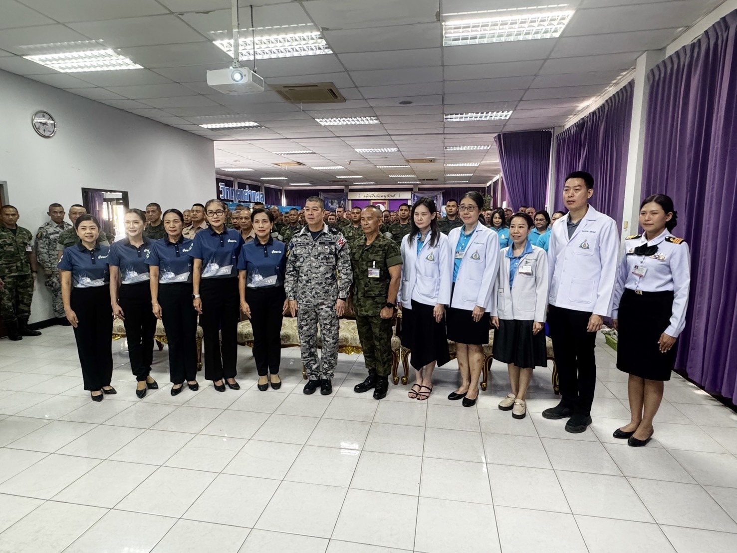 เมื่อ ๒๕ ธ.ค.๖๗ กองเรือยุทธการ ร่วมกับทีมแพทย์จาก รพ.สมเด็จพระนางเจ้าสิริกิติ์ พร. และ รพ.อาภากรเกียรติวงส์ ฐท.สส. จัดกิจกรรมส่งเสริมสุขภาพส่งเสริมสุขภาพเชิงรุกนักทำลายใต้น้ำจู่โจม (Frog Navy Good Health & Safety) ตามโครงการ Better Home Better Health ของ กร. ประจำปีงบประมาณ ๖๘ ให้แก่กำลังพลของหน่วย นสร. ณ อาคารจำหน่ายตั๋วพิพิธภัณฑ์ธรรมชาติวิทยาเกาะและทะเลไทย ข่าวผู้บังคับบัญชา 26 ธันวาคม 2567