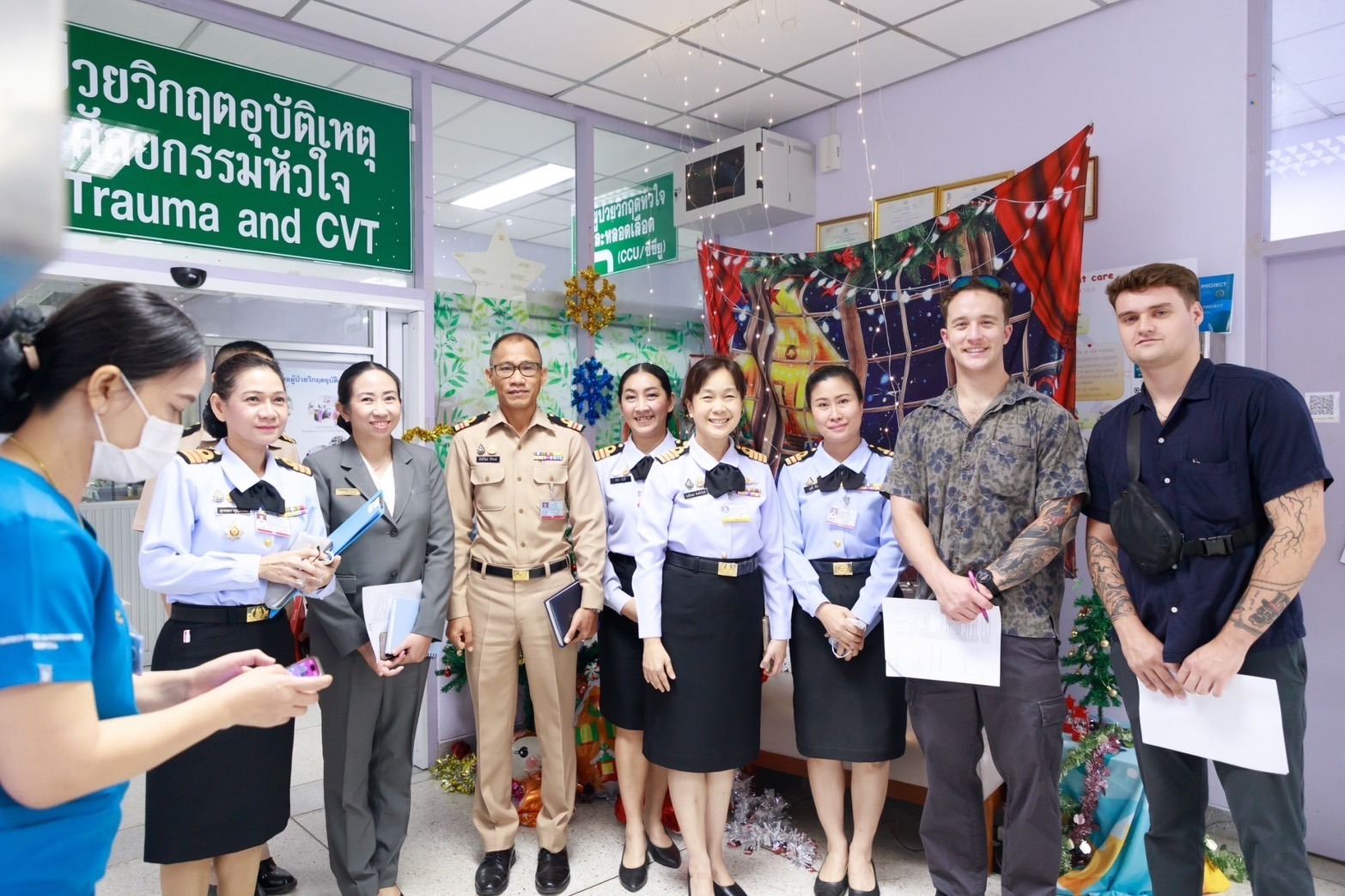 เมื่อ ๒๗ ธ.ค.๖๗ น.อ.หญิง นงลักษณ์ สิงหโกวินท์ รอง ผอ.รพ.สมเด็จพระนางเจ้าสิริกิติ์ พร. ให้การต้อนรับผู้แทนหน่วยรบพิเศษของกองทัพบกสหรัฐอเมริกา Special Force Readiness Evaluation (SFRE) Team เข้าเยี่ยมดูงานในหน่วย ER/ ICU/ WARD/ X-RAY/ BLOOD BANK/ ลานจอดเฮลิคอปเตอร์ ณ รพ.สมเด็จพระนางเจ้าสิริกิติ์ พร. ข่าวผู้บังคับบัญชา 3 มกราคม 2568