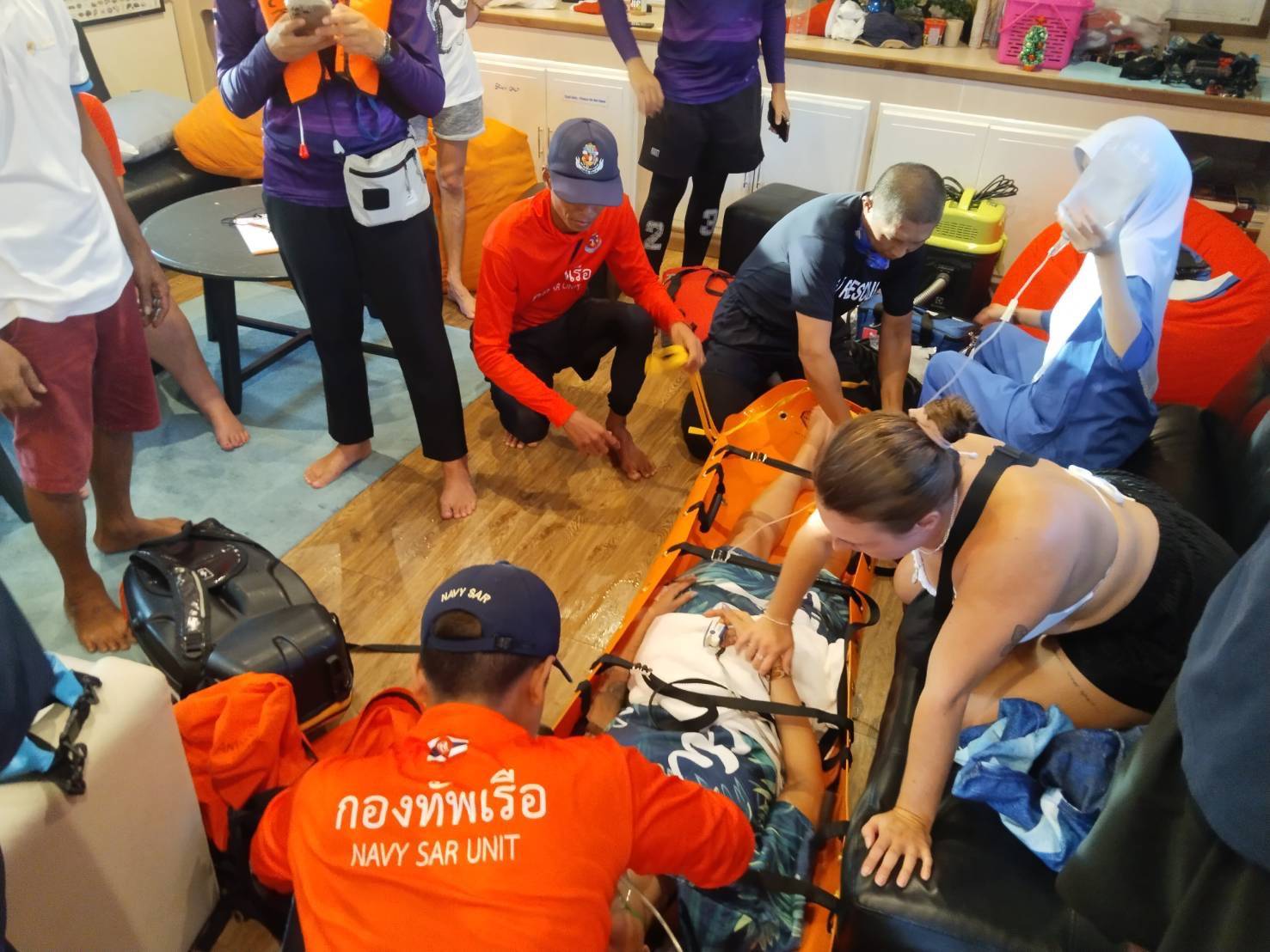เมื่อ ๒๑ ธ.ค.๖๗ นรภ.ทร.ก.สิมิลัน ได้รับเเจ้งจากเจ้าหน้าที่หน่วยพิทักษ์อุทยานแห่งชาติที่ สล.๑ (เกาะเมียง) มีนักท่องเที่ยวมีอาการคล้ายน๊อคน้ำ ทราบชื่อเป็น Mrs Rigzin lsabelle baumann เพศหญิง อายุ ๒๙ ปี สัญชาติ สวิสเซอร์แลนด์ เป็นนักท่องเที่ยวของบริษัท เขาหลักสคูบา แอดแวนเจอร์ ชื่อเรืออรุณศิริ จากการสอบถามกัปตัน เมื่อเช้าหลังจากดำน้ำไดรฟ์เเรก (เกาะ ๕) ผู้ป่วยมีอาการปวดหัว แล้วหยุดพักในไดรฟ์ที่ ๒ หลังจากนั้นมีอาการดีขึ้น และได้ดำน้ำไดรฟ์ที่ ๓ (เกาะ๗) หลังขึ้นจากน้ำ มีอาการปวดหัว อาเจียนและอ่อนแรง นำส่งผู้ป่วยให้กับ ศูนย์การแพทย์เขาหลัก ข่าวผู้บังคับบัญชา 23 ธันวาคม 2567