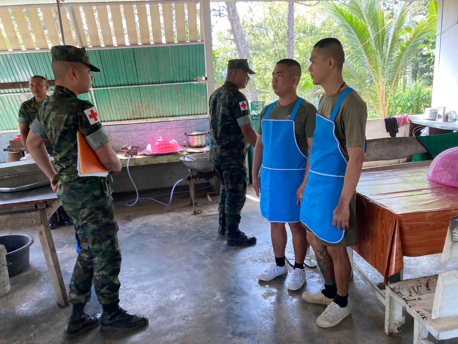 เมื่อ ๒๐ ธ.ค.๖๗ ฉก.ทพ.นย. (ที่พยาบาล ชค.ทพ.นย.๒ฯ) ให้การต้อนรับ ร.ต.ชินกร แคนศรี นายทหารเวชกรรมป้องกัน ร้อย.พ.กอง สนช.กจต. และคณะ ตรวจประเมิน เพื่อแนะนำให้โรงครัวและห้องอาหารเป็นไปตามสุขลักษณะตามนโยบายของ ผบ.ทร โดยมี ร.อ.กิตติภณ เพชรทวีรัตน์ นพบ.ชค.ทพ.นย.๒ฯ และ ร.ท.ฐานวัฒน์ มั่นคง นายทหารส่งกำลังบำรุง ชค.ทพ.นย.๒ฯ เข้ารับการตรวจและประเมินฯ ณ ชค.ทพ.นย.๒ฯ ต.สะตอน อ.สอยดาว จว.จันทบุรี ข่าวผู้บังคับบัญชา 23 ธันวาคม 2567