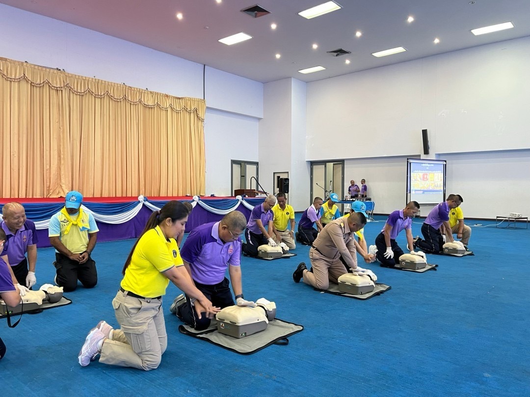 เมื่อ ๒๕ ธ.ค.๖๗ กองนาวิกเวชกิจ รพ.อาภากรเกียรติวงศ์ ฐท.สส. ให้การสนับสนุนวิทยากรบรรยายให้ความรู้ การช่วยฟื้นคืนชีพขั้นพื้นฐาน (CPR) และการใช้เครื่องฟื้นคืนคลื่นหัวใจด้วยไฟฟ้าแบบอัตโนมัติ (AED) ให้แก่ หน.เรือนแถวบ้านพักขอ กรง.ฐท.สส. ณ สโมสรริมน้ำ กรง.ฐท.สส. ข่าวผู้บังคับบัญชา 26 ธันวาคม 2567