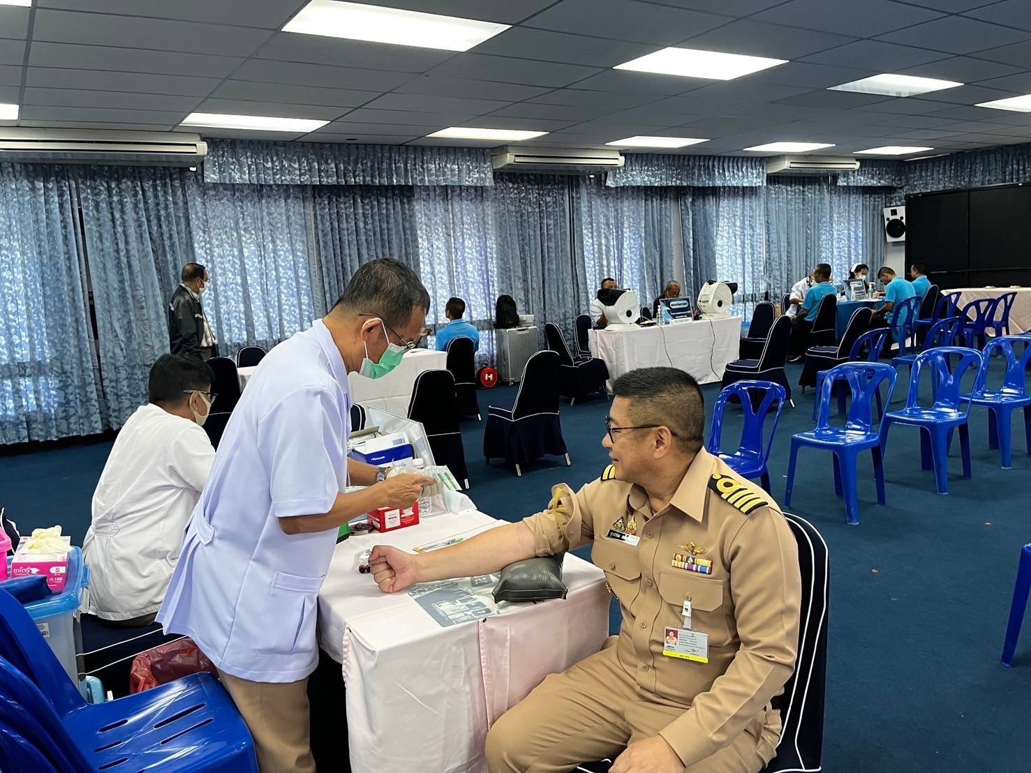 เมื่อ ๖ ธ.ค.๖๗ กลุ่มงานบริการสุขภาพเคลื่อน รพ.สมเด็จพระนางเจ้าสิริกิติ์ พร. จัดกิจกรรมตรวจสุขภาพประจำปีงบประมาณ ๒๕๖๘ ให้แก่กำลังพลกองทัพเรือในสังกัดกองเชื้อเพลิง พธ.ทร. และหน่วยงานใกล้เคียง โดยมี น.อ.สุวรรณ แย้มรักษา ผอ.กองเชื้อเพลิง พธ.ทร. เข้ารับการตรวจสุขภาพในครั้งนี้ ณ กองเชื้อเพลิง พธ.ทร. ข่าวผู้บังคับบัญชา 9 ธันวาคม 2567