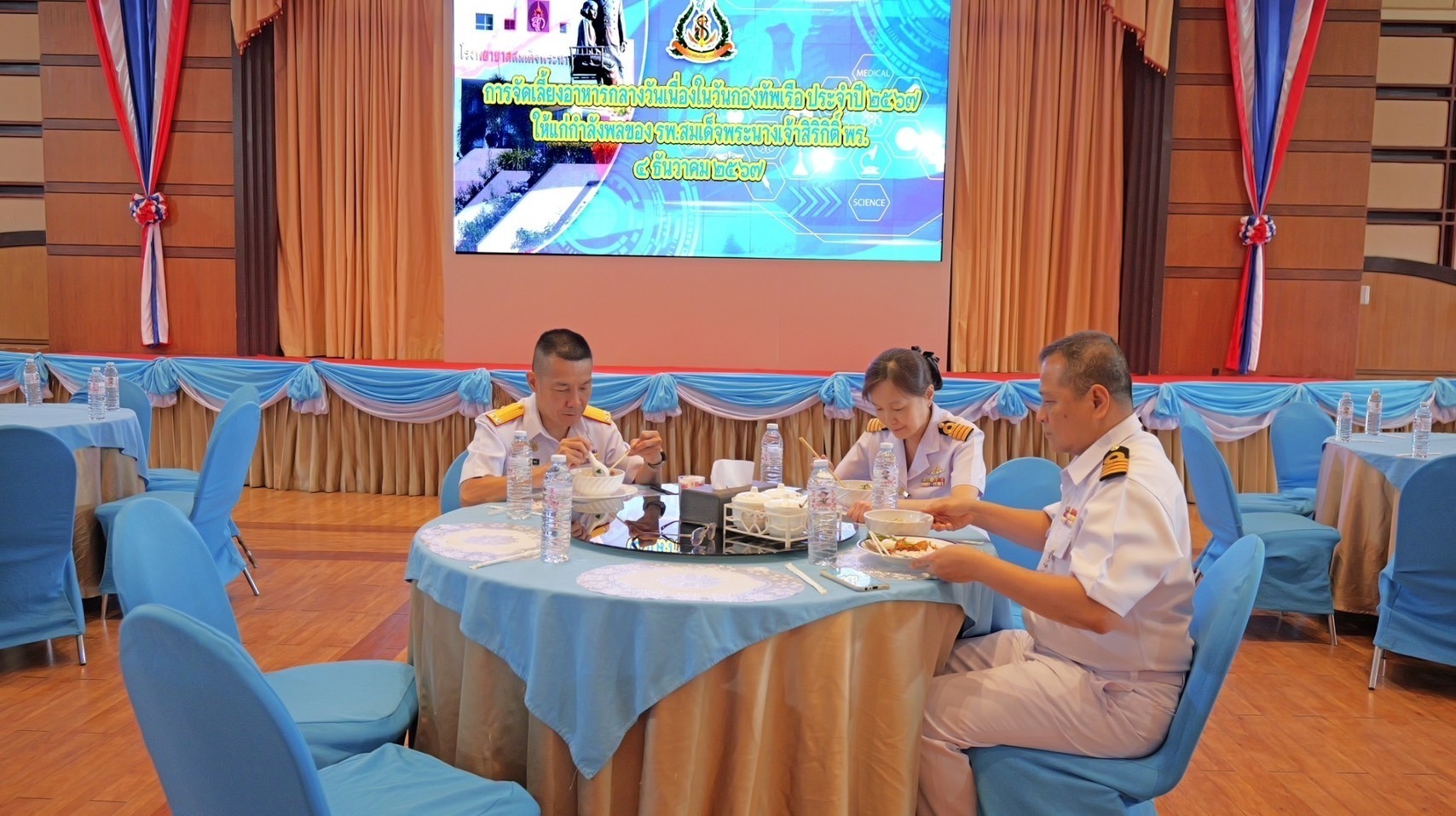 เมื่อ ๔ ธ.ค.๖๗ พล.ร.ต.พัฒนชัย เฉลิมวรรณ์ ผอ.รพ.สมเด็จพระนางเจ้าสิริกิติ์ พร. พร้อมคณะผู้บริหาร ร่วมรับประทานอาหารกลางวันกับกำลังพลของ รพ.ฯ เนื่องในวันกองทัพเรือ ประจำปี ๒๕๖๗ ณ ห้องภูหลวง หอประชุม รพ.สมเด็จพระนางเจ้าสิริกิติ์ พร. ข่าวผู้บังคับบัญชา 6 ธันวาคม 2567