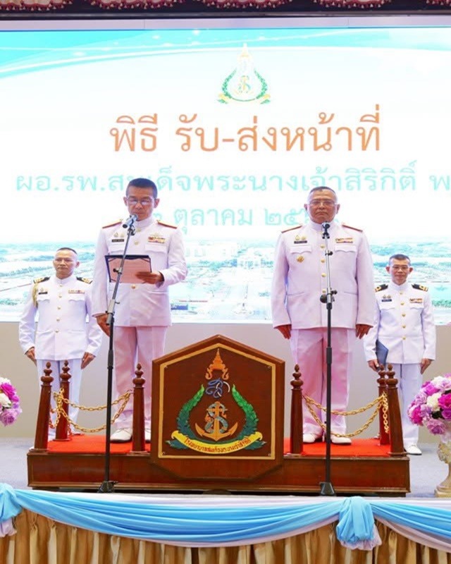 เมื่อ ๒ ต.ค.๖๘ พล.ร.ต.พัฒนชัย เฉลิมวรรณ์ ส่งมอบหน้าที่ ผอ.รพ.สมเด็จพระนางเจ้าสิริกิติ์ พร. ให้แก่ พล.ร.ต.กิติศักดิ์ สายนุช โดยมี รอง ผอ.รพ.ฯ หน.นขต.รพ.ฯ และกำลังพล รพ.ฯ ร่วมพิธี ณ ห้องประชุมภูหลวง หอประชุม รพ.ฯ ข่าวผู้บังคับบัญชา 7 ตุลาคม 2568