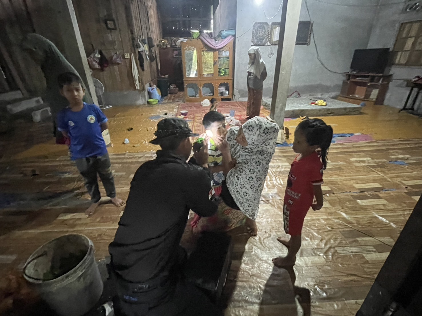 เมื่อ ๓๐ พ.ย.๖๗ พ.จ.อ.วุฒินันต์ ประทุม รอง.หน.ชป.กร. พร้อมกำลังพลจิตอาสา และ จ.อ.ธันวา ชาวไร่นาค เจ้าหน้าที่พยาบาลประจำกองร้อยทหารพรานนาวิกโยธิน ที่ ๘ ฉก.ทพ.นย.ทร. เข้าช่วยเหลือมอบน้ำดื่มและ ตรวจรักษาพยาบาลอาการเจ็บป่วยเบื้องต้น เนื่องจากสถานการณ์น้ำท่วมในพื้นที่บ้านปูตะ ยังมีระดับสูงอยู่มี ความสูงของน้ำประมาณ ๘๐-๑๔๐ ซม. กองร้อยทหารพรานนาวิกโยธินที่ ๘ฯ จึงดำเนินการจัดกำลังพลจิตอาสาเข้าช่วยเหลือพี่น้องประชาชนในพื้นที่เพื่อบรรเทาความเดือดร้อนในเบื้องต้น ณ ชุมชนบ้านปูตะ ม.๓, บ้านหัวเขาบ้านย่อยบ้านกูแบลิบิส ม.๔, ชุมชนบ้านกือดอนอง ต.ละหาร อ.ยี่งอ จว.นราธิวาส ข่าวผู้บังคับบัญชา 2 ธันวาคม 2567