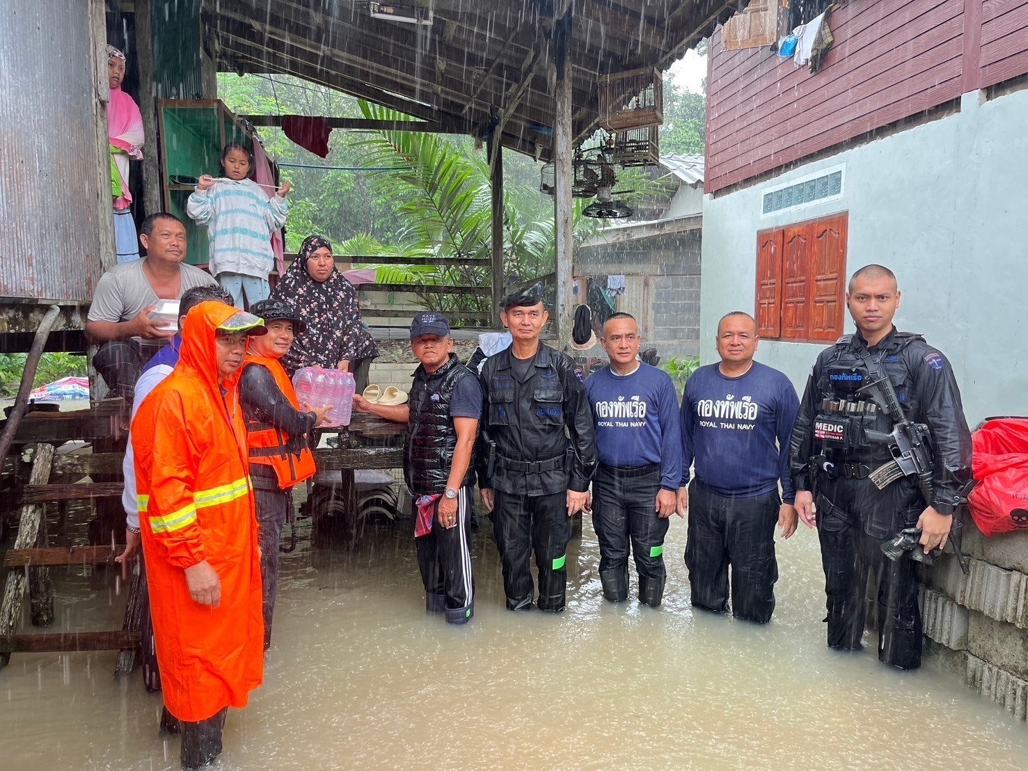เมื่อ ๒๘ พ.ย.๖๗ ร.ท.นฐกร มุสิกะจินดา จนท.พยาบาลกองร้อยที่ ๒ หน่วยเฉพาะกิจนาวิกโยธินกองทัพเรือ ๓๓ พร้อมด้วย ชุดปฏิบัติการกิจการพลเรือน, จ.อ.อานนท์ กาญจนโกศล จนท.พยาบาลกองร้อยฯ เข้าสำรวจพื้นที่ประสบอุทกภัยเเละเเจกจ่ายยาสามัญประจำบ้าน ณ ม.๙ บ้านชุมบก ต.เกาะสะท้อน อ.ตากใบ จว.นราธิวาส ข่าวผู้บังคับบัญชา 29 พฤศจิกายน 2567