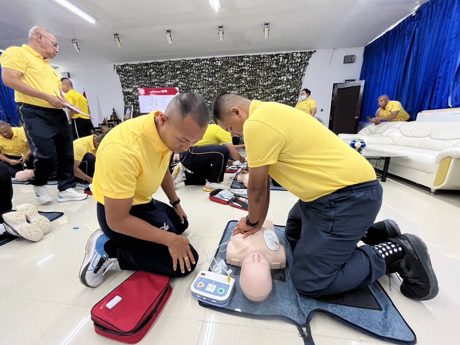 เมื่อ ๒๕ พ.ย.๖๗ รพ.ฐท.พง.ทรภ.๓ ฝึกทบทวนการปฐมพยาบาล การกู้ชีพขั้นพื้นฐาน (CPR) การใช้เครื่องฟื้นคืนคลื่นหัวใจด้วยไฟฟ้าแบบอัตโนมัติ (AED) และฝึกการเข้าทีมโดยการสมมุติสถานการณ์ ให้แก่ กำลังพล กองพันต่อสู้อากาศยานที่ ๒๒ ณ ห้องประชุม บก.พันสอ.๒๒ ข่าวผู้บังคับบัญชา 27 พฤศจิกายน 2567