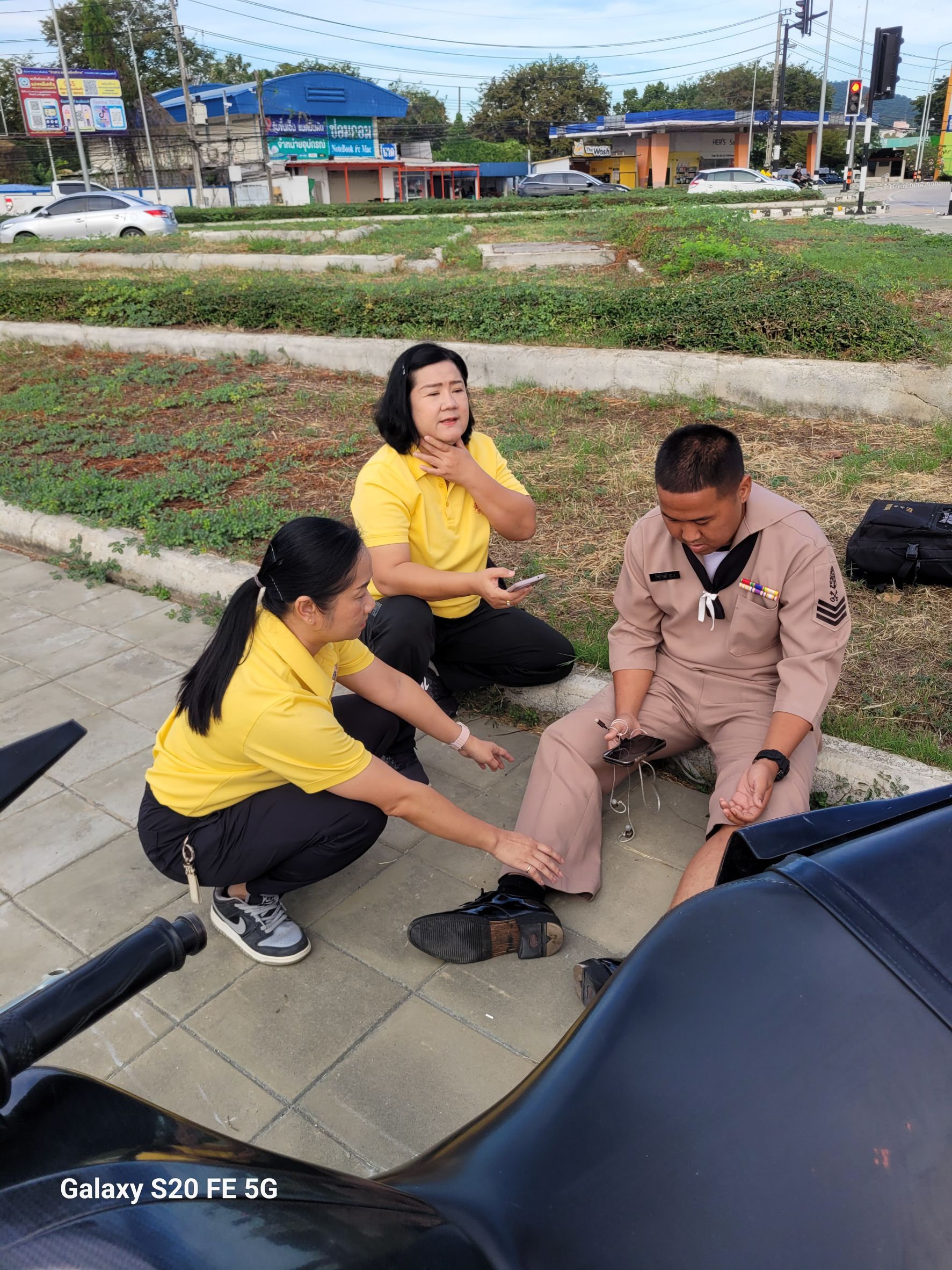 เมื่อ ๒๕ พ.ย.๖๗ ร.อ.หญิง มนีวรรณ สงวนทรัพย์ นพบ.แผนกจิตเวช กองสุขภาพจิต รพ.อาภากรเกียรติวงศ์ ฐท.สส. นพบ.แผนกบำบัดยาเสพติด กองสุขภาพจิต รพ.ฯ ได้พบข้าราชการเรือหลวงตากสินประสบอุบัติเหตุมอเตอร์ไซร์ ล้ม บริเวณแยกไฟแดงหนวดปลาหมึกขณะจะไปปฏิบัติงาน มีแผลถลอกบริเณใบหน้าด้านขวา และหัวเข่าทั้งสองข้าง จึงได้ เข้าทำการช่วยเหลือผู้ประสบอุบัติเหตุ จึงได้ทำการดูแลปฐมพยาบาลเบื้องต้น โทรแจ้ง ๑๖๖๙ ส่งผู้บาดเจ็บไปยังโรงพยาบาลอย่างปลอดภัย ข่าวผู้บังคับบัญชา 27 พฤศจิกายน 2567