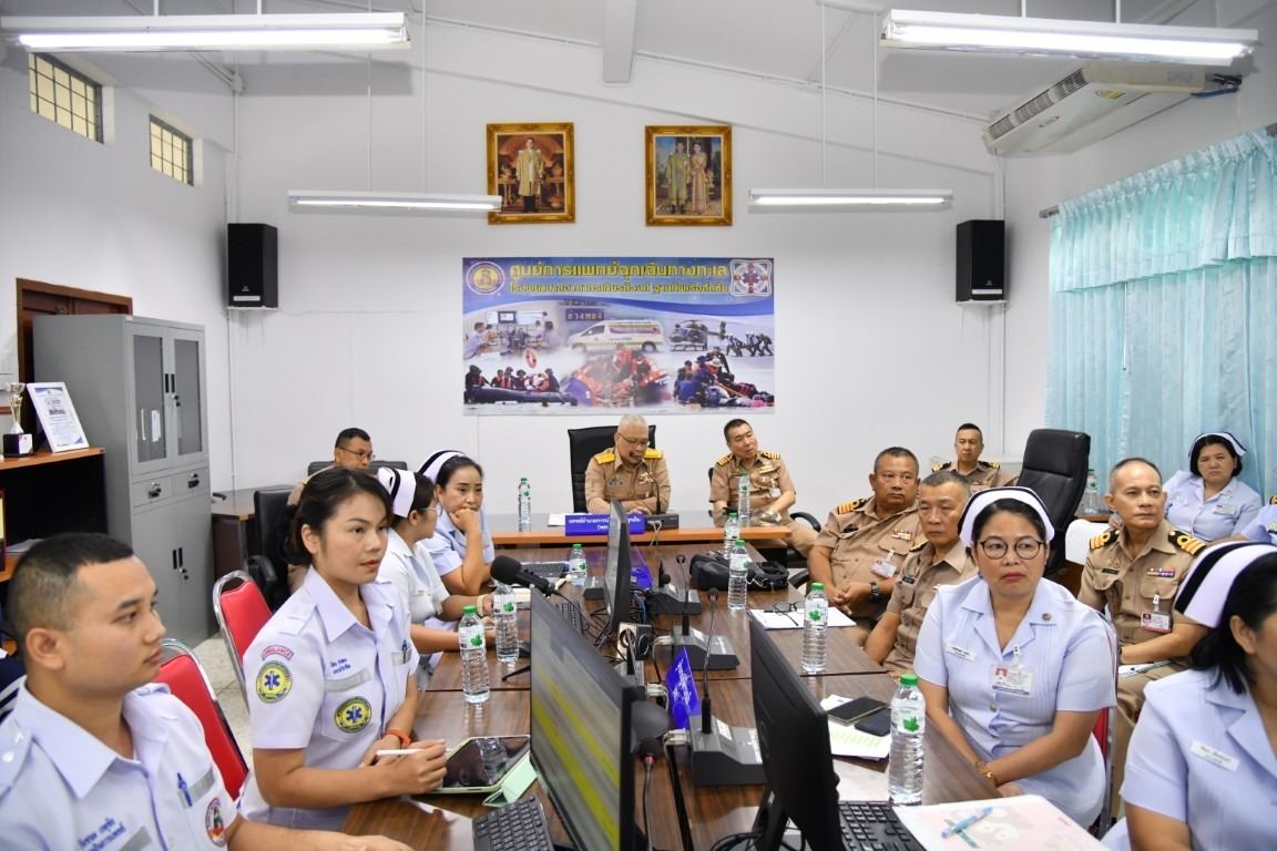 ข่าวสาร/ กิจกรรม นขต.พร. และหน่วยแพทย์ปฐมภูมิ ทร.NEWS SUBUNIT AND PCU เมื่อ ๖ พ.ย.๖๗ น.อ.สุเชษฐ ตรรกธาดา รอง ผอ.รพ.อาภากรเกียรติวงศ์ ฐท.สส. มอบแจกันดอกไม้แสดงความยินดี แด่ พล.ร.ต.อารยะ สิงหเสมานนท์ ผบ.กยพ.กร. เนื่องในวันคล้ายวันสถาปนากองเรือยกพลขึ้นบกและยุทธบริการ ครบรอบ ๗๑ ปี ณ บก.กยพ.กร. ข่าวผู้บังคับบัญชา 8 พฤศจิกายน 2567 เมื่อ ๕ พ.ย.๖๗ ห้องตรวจโรคหัวใจ รพ.สมเด็จพระนางเจ้าสิริกิติ์ พร. ตรวจคัดกรองกำลังพลจาก น.ร.ล.คีรีรัตน์ สังกัดกองเรือฟริเกตที่ ๑ ที่มีค่า CVR SCORE > ๑๐ โดยได้รับเข้ารับการเดินสายพาน (EST) ทั้งนี้เพื่อตรวจคัดกรองกำลังพลที่มีความเสี่ยงต่อการเกิดโรคหัวใจขาดเลือด ซึ่งกิจกรรมนี้ได้ดำเนินการต่อเนื่องตามโครงการ Better Home Better Health รพ.สมเด็จพระนางเจ้าสิริกิติ์ พร. ข่าวผู้บังคับบัญชา 8 พฤศจิกายน 2567 เมื่อ ๕ พ.ย.๖๗ พล.ร.ต.ชาตรี เปี่ยมศิริ ผอ.รพ.อาภากรเกียรติวงศ์ ฐท.สส. น.อ.สุเชษฐ ตรรกธาดา รอง ผอ.รพ.อาภากรเกียรติวงศ์ ฐท.สส. และทีมผู้เยี่ยมสำรวจ ลงเยี่ยม ๒ หน่วยงาน ที่ ศูนย์การแพทย์ฉุกเฉินทางทะเล และ กองสนับสนุนการรักษาพยาบาล เพื่อรับทราบปัญหาข้อขัดข้อง ข้อเสนอแนะเพื่อหาแนวทางการแก้ปัญหาได้ทันทีที่หน้างาน ให้กำลังใจ ชื่นชม ค้นหาผลงานที่ทำได้ดี เพื่อลงหน้างานคุยกับหน่วยงานต่างๆสื่อสารการปฏิบัติตามนโยบาย ผอ.รพ.อาภากรเกียรติวงศ์ ฐท.สส. ข่าวผู้บังคับบัญชา 8 พฤศจิกายน 2567 เมื่อ ๔ พ.ย.๖๗ กองนาวิกเวชกิจ รพ.อาภากรเกียรติวงศ์ ฐท.สส. สนับสนุนวิทยากรบรรยายให้ความรู้และฝึกอบรมการช่วยฟื้นคืนชีพขั้นพื้นฐาน (CPR) และการใช้เครื่องฟื้นคืนคลื่นหัวใจด้วยไฟฟ้าแบบอัตโนมัติ (AED) ให้แก่ กำลังพล กพช.พธ.ทร. ณ ห้องประชุม กพช.พธ.ทร. ข่าวผู้บังคับบัญชา 8 พฤศจิกายน 2567 เมื่อ ๕ พ.ย.๖๗ รพ.ฐท.พง.ทรภ.๓ ฝึกอบรมทบทวนการปฐมพยาบาล การกู้ชีพขั้นพื้นฐาน (CPR) การใช้เครื่องฟื้นคืนคลื่นหัวใจด้วยไฟฟ้าแบบอัตโนมัติ(AED) ให้แก่ กำลังพล กอง รปภ.ฐท.พง.กรม รปภ.นย และ บก.ฐท.พง.ทรภ.๓ เพื่อเป็นการเตรียมความพร้อมในการรับตรวจ จร.ทร. และ เป็นการทบทวนเสริมสร้างทักษะในการช่วยชีวิตขั้นพื้นฐาน ณ สโมสรสัญญาบัตร ฐท.พง.ทรภ.๓ ข่าวผู้บังคับบัญชา 8 พฤศจิกายน 2567 เมื่อ ๔ พ.ย.๖๗ พล.ร.ต.ชาตรี เปี่ยมศิริ ผอ.รพ.อาภากรเกียรติวงศ์ ฐท.สส. มอบหมายให้ น.อ.หญิง อัจฉรี สิกขมาน ผอ.กองสุขภาพจิต รพ.ฯ และคณะ ดำเนินการตรวจปัสสาวะหาสารเสพติด ยาบ้า ยาไอซ์ กัญชา เฮโรอีน มอร์ฟีน ในทหารใหม่กองประจำการ ผลัดที่ ๓/๖๗ เพื่อค้นหา ผู้เสพ ผู้ติดยาเสพติดเข้าสู่กระบวนการบำบัดรักษา โดยมี น.อ.มงคล อุปถัมภ์ รอง ผบ.ศฝท.ยศ.ทร. ให้การต้อนรับ ณ ผบ.ศฝท.ยศ.ทร. ข่าวผู้บังคับบัญชา 8 พฤศจิกายน 2567 เ