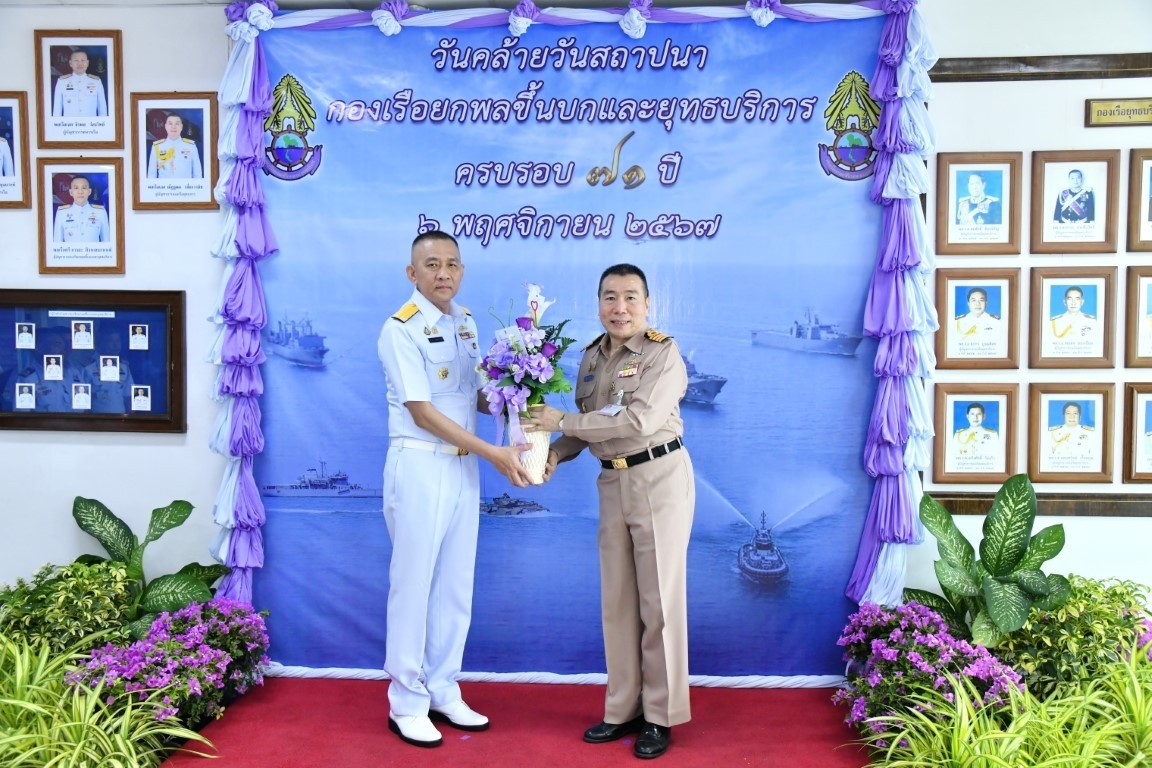 เมื่อ ๖ พ.ย.๖๗ น.อ.สุเชษฐ ตรรกธาดา รอง ผอ.รพ.อาภากรเกียรติวงศ์ ฐท.สส. มอบแจกันดอกไม้แสดงความยินดี แด่ พล.ร.ต.อารยะ สิงหเสมานนท์ ผบ.กยพ.กร. เนื่องในวันคล้ายวันสถาปนากองเรือยกพลขึ้นบกและยุทธบริการ ครบรอบ ๗๑ ปี ณ บก.กยพ.กร. ข่าวผู้บังคับบัญชา 8 พฤศจิกายน 2567