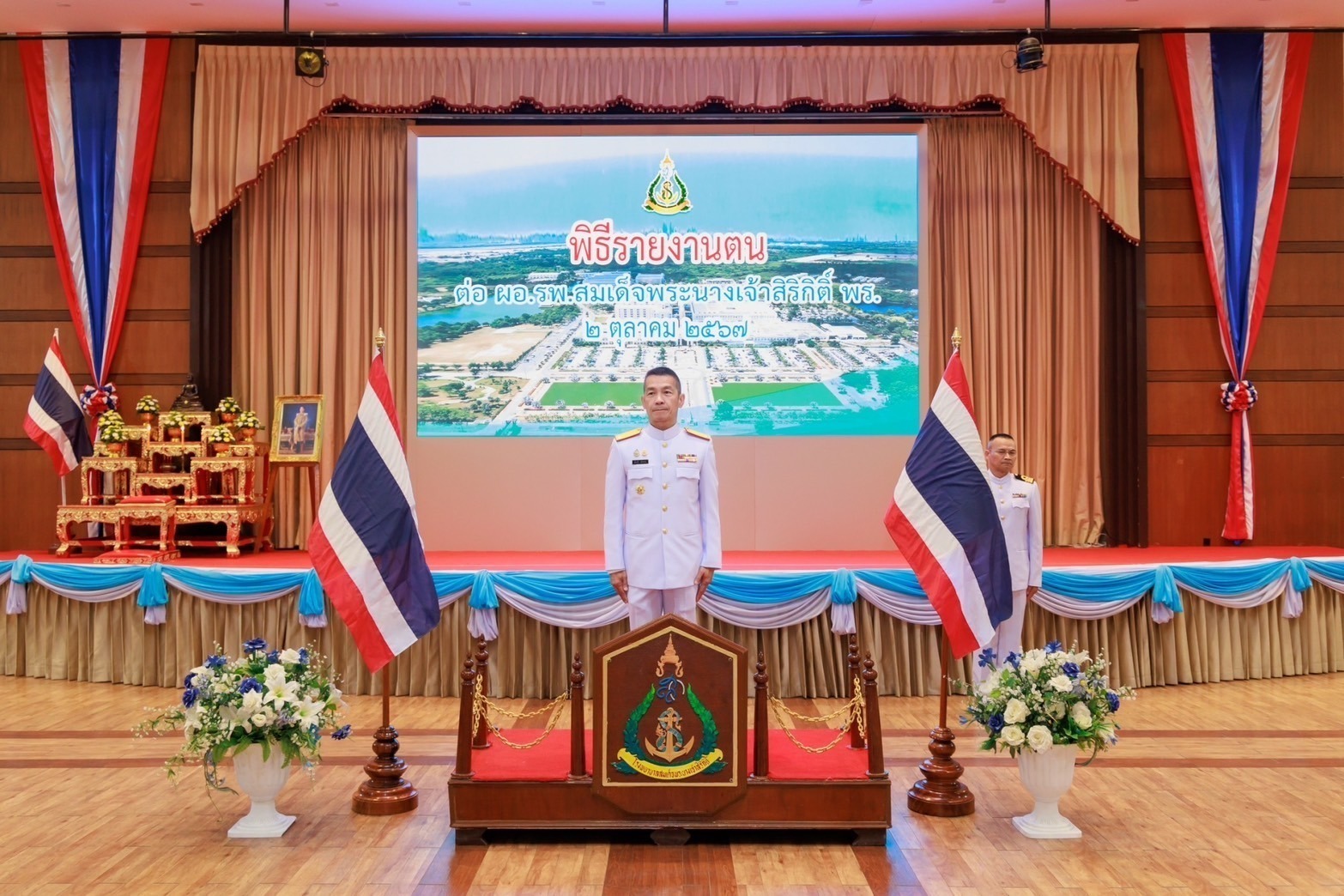 เมื่อ ๒ ต.ค.๖๗ พล.ร.ต.พัฒนชัย เฉลิมวรรณ์ ผอ.รพ.สมเด็จพระนางเจ้าสิริกิติ์ พร. เป็นประธานในพิธี รายงานตนเอง ของรอง ผอ.รพ.ฯ และ หน.นขต.รพ.ฯ ณ ห้องภูหลวง หอประชุม รพ.สมเด็จพระนางเจ้าสิริกิติ์ พร. ข่าวผู้บังคับบัญชา 3 ตุลาคม 2567
