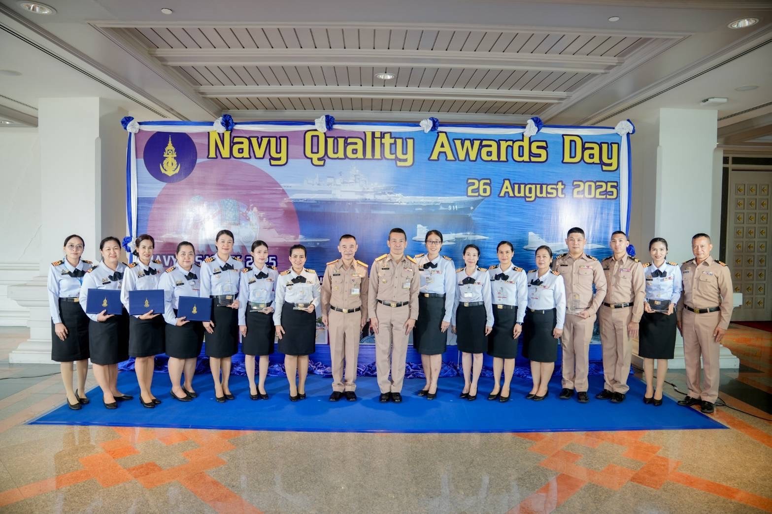 เมื่อ ๒๖ ส.ค.๖๘ พล.ร.ต.พัฒนชัย เฉลิมวรรณ์ ผอ.รพ.สมเด็จพระนางเจ้าสิริกิติ์ พร. และ น.อ.หญิง เพ็ญนภา ไสยสมบัติ หน.สำนักงานวิจัยและการจัดการความรู้ รพ.ฯ พร้อมบุคลากร รพ.ฯ เข้ารับรางวัลในงาน“วันรางวัลคุณภาพกองทัพเรือ NQA Day (Navy Quality Award Day)” ประจำปี งป.๖๘ ณ ห้องเจ้าพระยา หอประชุมกองทัพเรือ ข่าวผู้บังคับบัญชา 29 สิงหาคม 2568