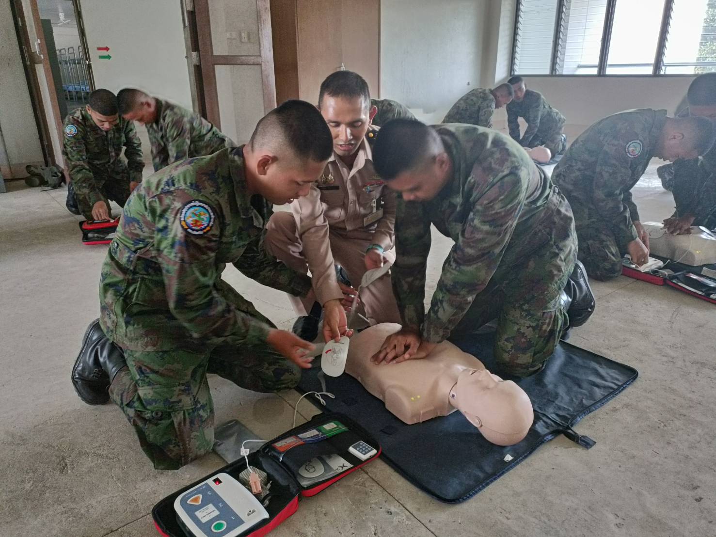 เมื่อ ๒๖ ส.ค.๖๘ น.อ.สุทธิใจ ใยทอง ผอ.รพ.ฐท.พง. ทรภ.๓ ได้มอบหมายให้ ร.อ.หญิง วิพรรัตน์ เลื่อนเพ็ชร หน.ทีมฝึกอบรมการปฐมพยาบาลเบื้องต้น การกู้ชีพขั้นพื้นฐาน และ พ.จ.อ.หญิง นัชรี ชูรัตน์ ประจำหมวดเวชกรรมป้องกันฯ ดำเนินการฝึกอบรมการปฐมพยาบาล การกู้ชีพขั้นพื้นฐาน (CPR) การใช้เครื่อง AED และการป้องกันเฝ้าระวังอันตรายจากความร้อน (Heat stroke) ให้แก่ กำลังพล พัน รฝ.๑๑ เพื่อเตรียมความพร้อมก่อนออกปฏิบัติราชการ ณ อาคารร้อยป้องกัน พัน รฝ.๑๑ ข่าวผู้บังคับบัญชา 29 สิงหาคม 2568