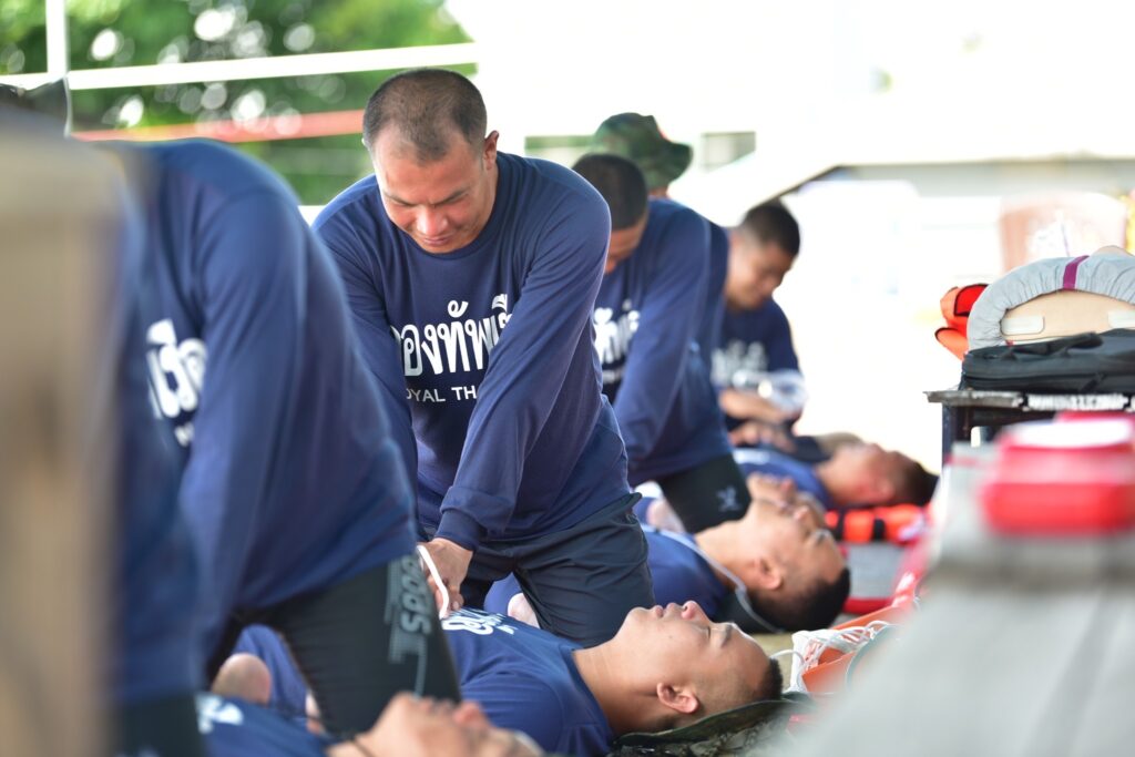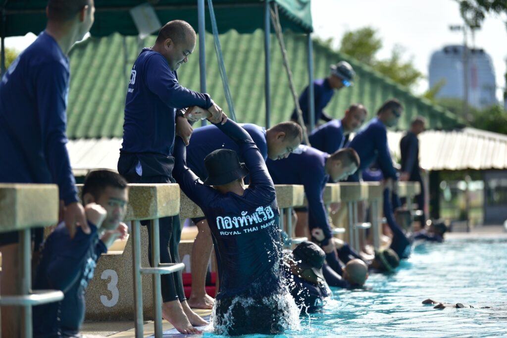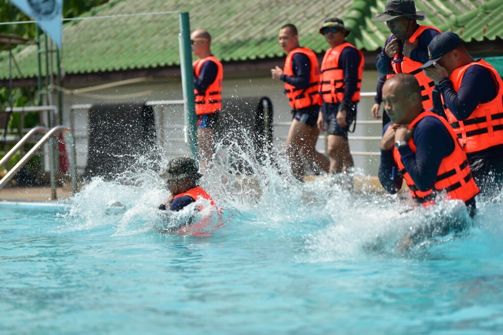 ระหว่าง ๑๕ – ๑๗ พ.ย.๖๖ ทีมวิทยากรหลักสูตรการกู้ชีพและช่วยชีวิตทางน้ำ กวตบ.พร. ให้ความรู้เกี่ยวกับการกู้ชีพและช่วยชีวิตทางน้ำ ในด้านการแพทย์ เพื่อเสริมเขี้ยวเล็บใหแก่กำลังพล กลน.ทร. ณ กองเรือลำน้ำ กองทัพเรือและสระว่ายน้ำภูติอนันต์ ๒ / กวก.ศวก.พร. / By ข่าวผู้บังคับบัญชา จำนวนคนดู : 7