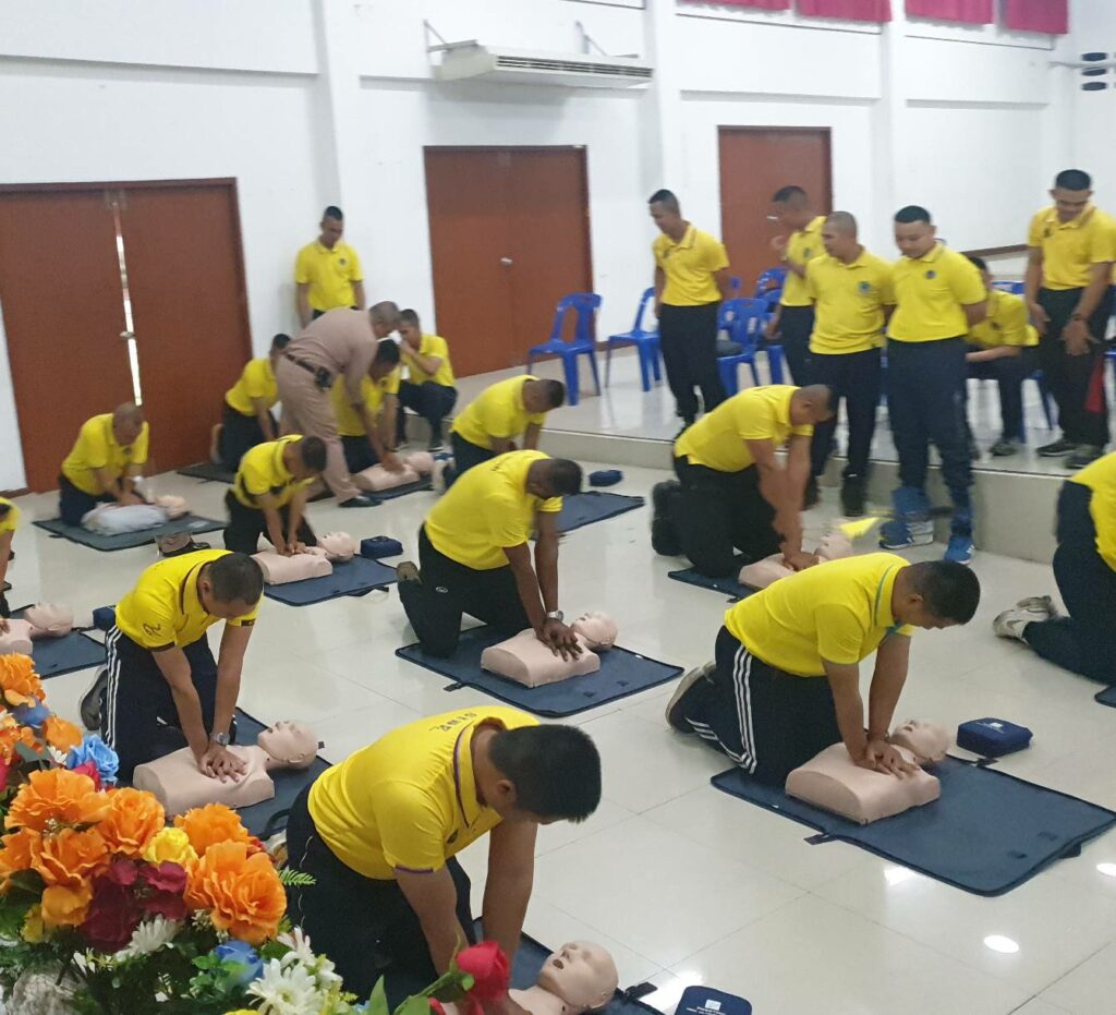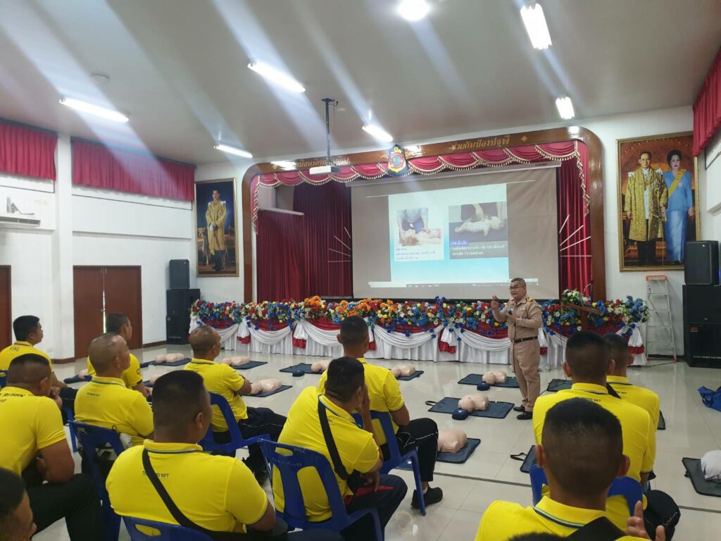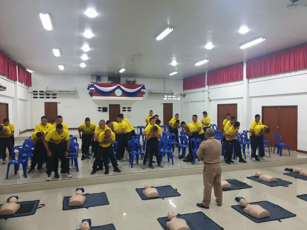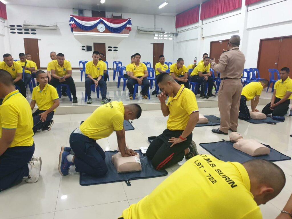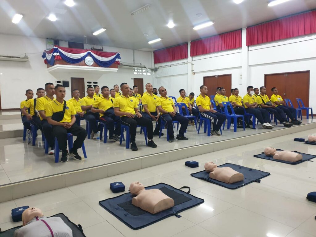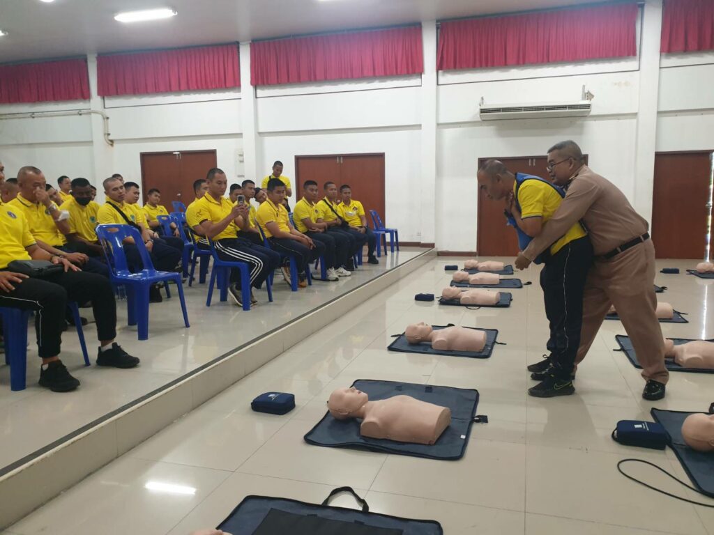 เมื่อ ๑๑ ม.ค.๖๗ กวก.ศวก.พร. สนับสนุนวิทยากรบรรยายให้ความรู้การช่วยฟื้นคืนชีพขั้นพื้นฐาน (CPR) และการใช้เครื่องฟื้นคืนคลื่นหัวใจด้วยไฟฟ้าแบบอัตโนมัติ (AED) ให้แก่กำลังพล รล.สุรินทร์ กยพ.กร. ณ ห้องประชุม ๑ รร.นวก.ศวก.พร.