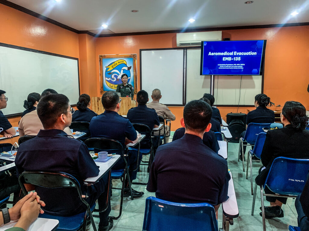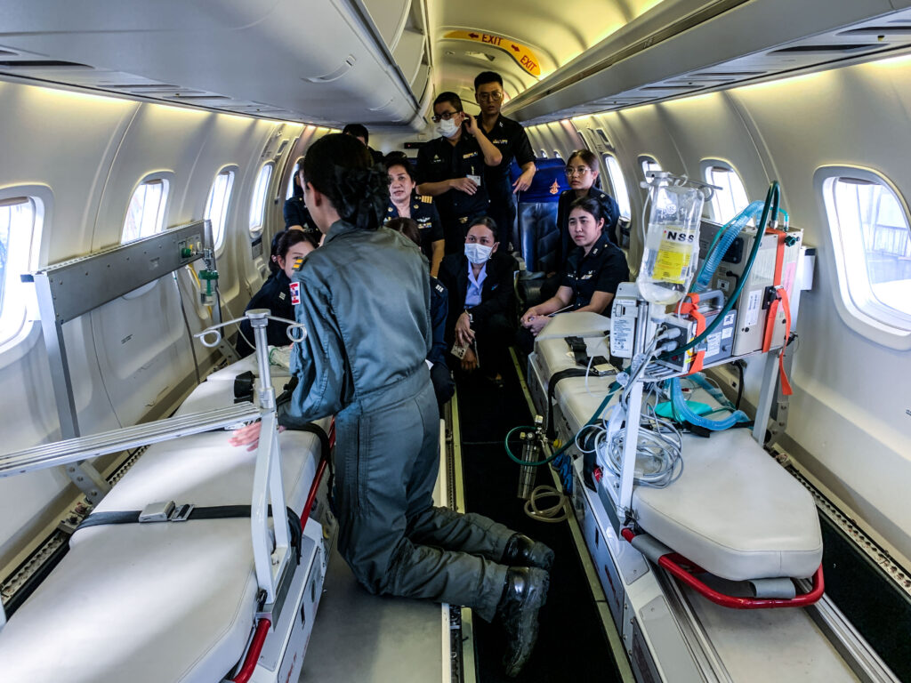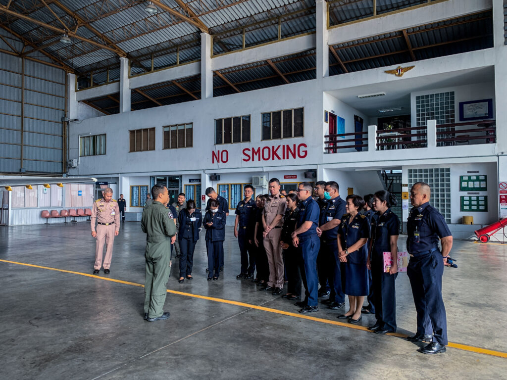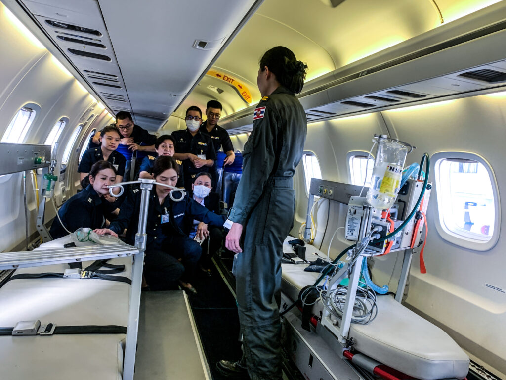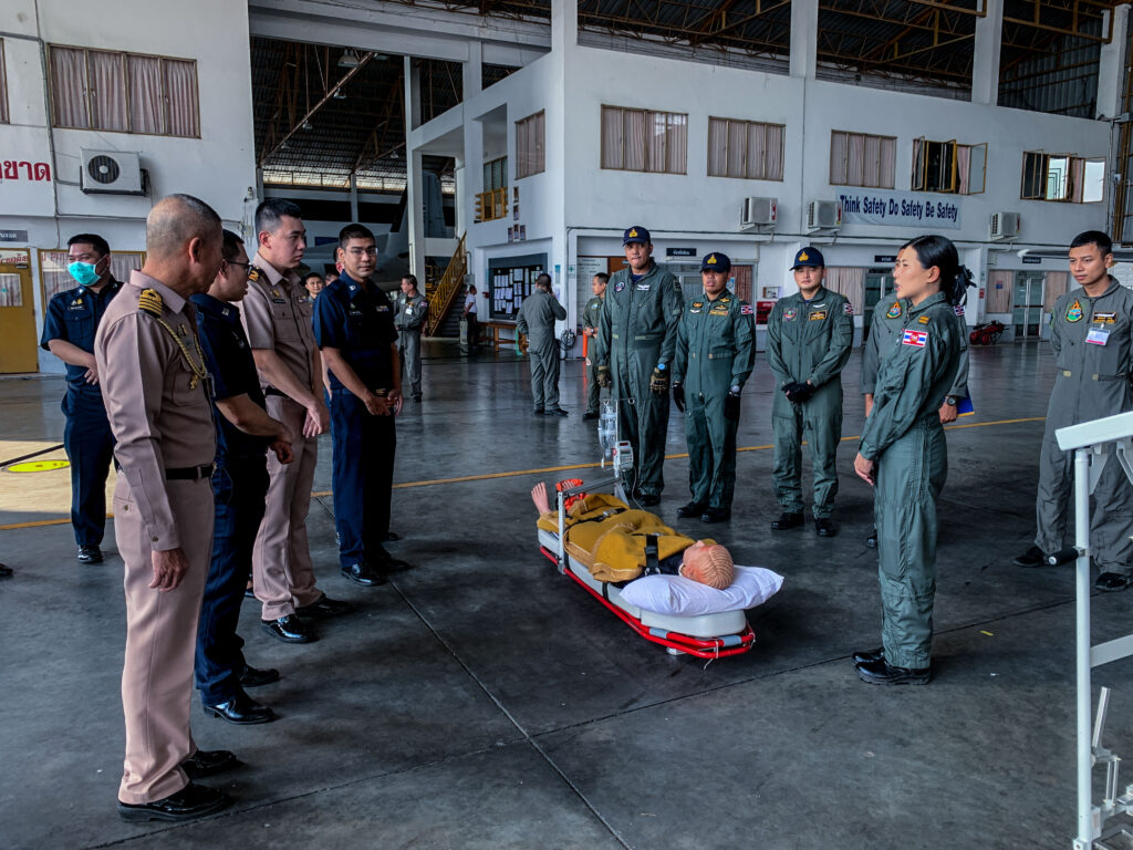 เมื่อ ๑๑ ม.ค.๖๗ ร.อ.หญิงกานต์พิชชา ปุจฉาการ  รอง หก.กวตบ.รพ.อาภากรเกียรติวงศ์ ฐท.สส. ให้การสนับสนุนทีมแพทย์ พยาบาลและอุปกรณ์ทางการแพทย์ เพื่อสาธิตการลำเลียงผู้ป่วยทางอากาศ ให้แก่หลักสูตรแพทย์เวชศาสตร์การบิน รุ่นที่ ๓๘ สวบ.ทอ. โดยมี น.อ.ธเนศ ธีรชัยธัญญศักดิ์ เสธ.กบร.กร. ให้การต้อนรับ ณ ฝูงบิน ๒๐๑ กบร.กร.