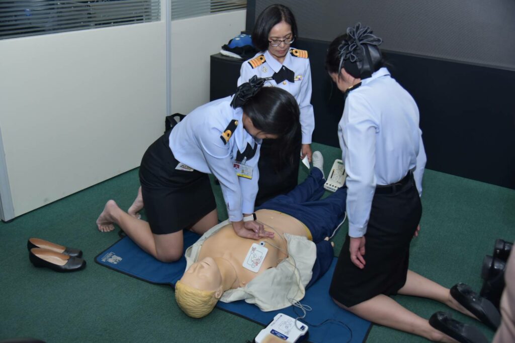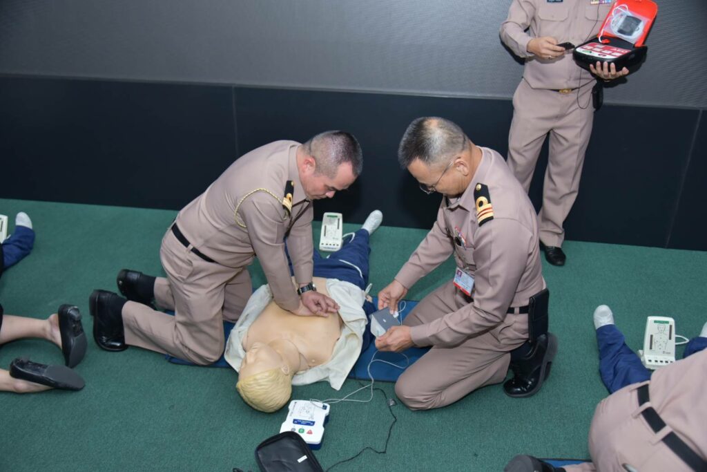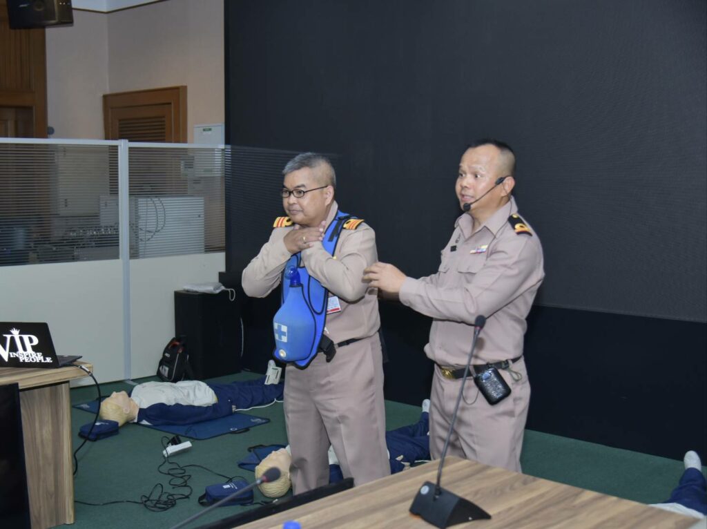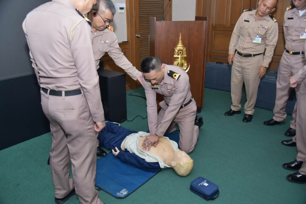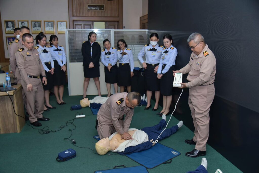 เมื่อ ๑๗ ก.พ.๖๗ กวก.ศวก.พร. สนับสนุนวิทยากรบรรยายให้ความรู้ขั้นพื้นฐานและการใช้เครื่องฟื้นคืนคลื่นหัวใจด้วยไฟฟ้าแบบอัตโนมัติ(AED) ให้แก่ หลักสูตรผู้ปฏิบัติหน้านายธงและผช.นายธงประจำผู้บังคับบัญชา ณ.ห้องนารายณ์ทรงสุบรรณ อาคาร ๕ บก.ทร.วังเดิม / กวก.ศวก.พร. / By ข่าวผู้บังคับบัญชา จำนวนคนดู : 14