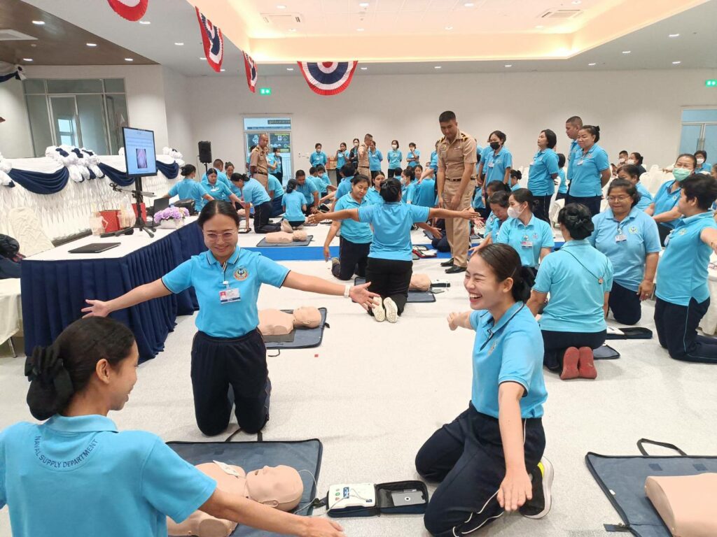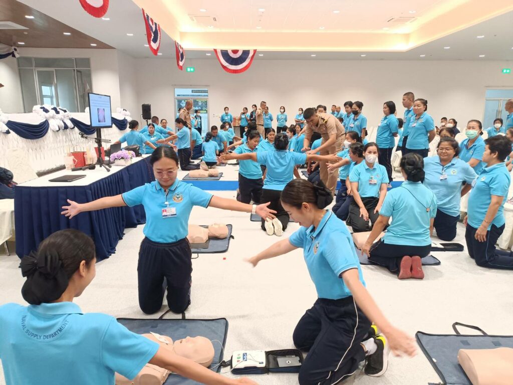 เมื่อ ๒๐ ก.ย.๖๗ กวก.ศวก.พร. สนับสนุนวิทยากรบรรยายให้ความรู้ การช่วยฟื้นคืนชีพขั้นพื้นฐาน (CPR) และการใช้เครื่องฟื้นคืนคลื่นหัวใจด้วยไฟฟ้าแบบอัตโนมัติ (AED) ให้แก่กำลังพธ.ทร. ณ ห้องประชุม ชั้น๓ บก.พธ.ทร.