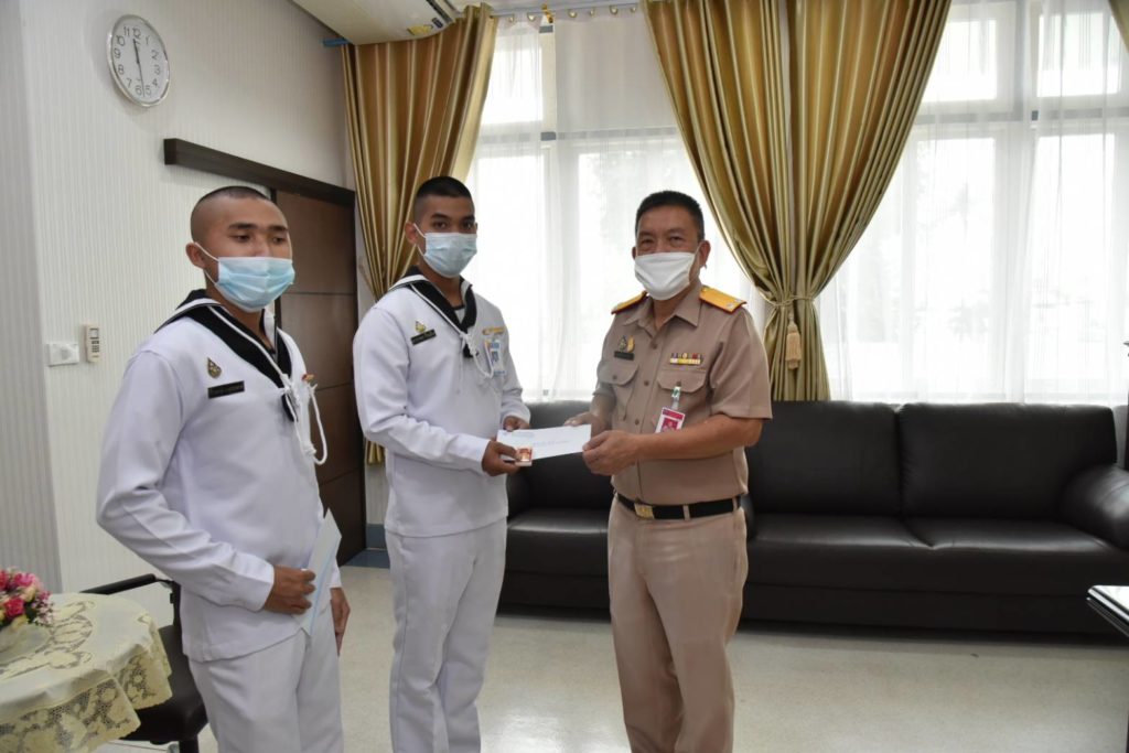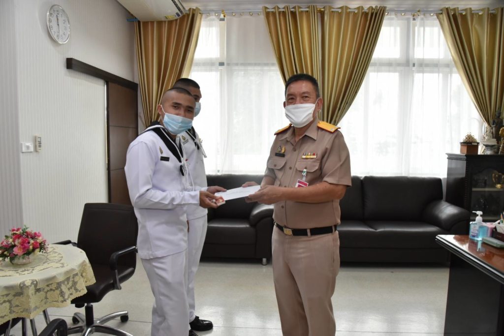 เมื่อวันที่ 24 ก.พ.64 พล.ร.ต.คมสัน วสุวานิช ผอ.รพ.อาภากรเกียรติวงศ์ ฐท.สส. กล่าวให้โอวาทและมอบเงินเพื่อเป็นขวัญและกำลังใจแก่ทหารกองประจำการ สังกัด รพ.อาภากรเกียรติวงศ์ ฐท.สส. ผลัดที่ 1 (1/63) จำนวน 2 นาย ที่จะครบปลดเป็นทหารกองหนุน ในวันที่ 1 มี.ค.64 ณ กองบังคับการรพ.ฯ / รพ.อาภากรเกียรติวงศ์ ฐท.สส. / By admin จำนวนคนดู : 17