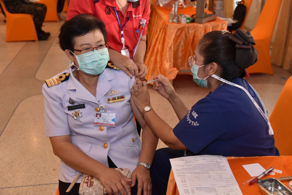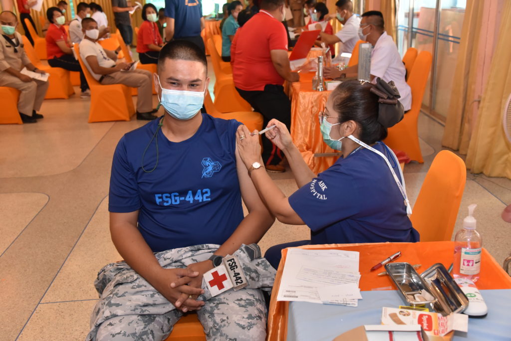 เมื่อวันที่ 7 พ.ค.64 รพ.อาภากรเกียรติวงศ์ ฐท.สส. ได้ดำเนินการฉีดวัคซีนต้านโควิด-19 “sinovac” ให้กับคณะผู้บริหาร, บุคลากรทางการแพทย์กลุ่มเสี่ยงของ รพ.ฯ และกำลังพลสายแพทย์จากหน่วยเรือต่าง ๆ ในพื่นที่สัตหีบ รอบที่ 4 เข็มที่ 1 จำนวน 162 คน ณ คลินิกวัคซีนโควิด-19 ห้องกฤษณจันทร์ รพ.ฯ / รพ.อาภากรเกียรติวงศ์ ฐท.สส. / By หน่วยขึ้นตรง จำนวนคนดู : 38