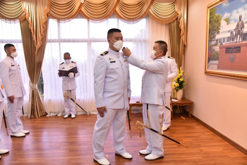 เมื่อวันที่ 31 ส.ค.64 พล.ร.ต.คมสัน วสุวานิช ผอ.รพ.อาภากรเกียรติวงศ์ ฐท.สส. เป็นประธานในพิธีประดับเครื่องหมายยศ พร้อมให้โอวาทกับข้าราชการที่ได้รับการเลื่อนยศสูงขึ้น ณ ห้องรับรองอาภากรเกียรติวงศ์ รพ.อาภากรเกียรติวงศ์ ฐท.สส. / รพ.อาภากรเกียรติวงศ์ ฐท.สส. / By หน่วยขึ้นตรง จำนวนคนดู : 33