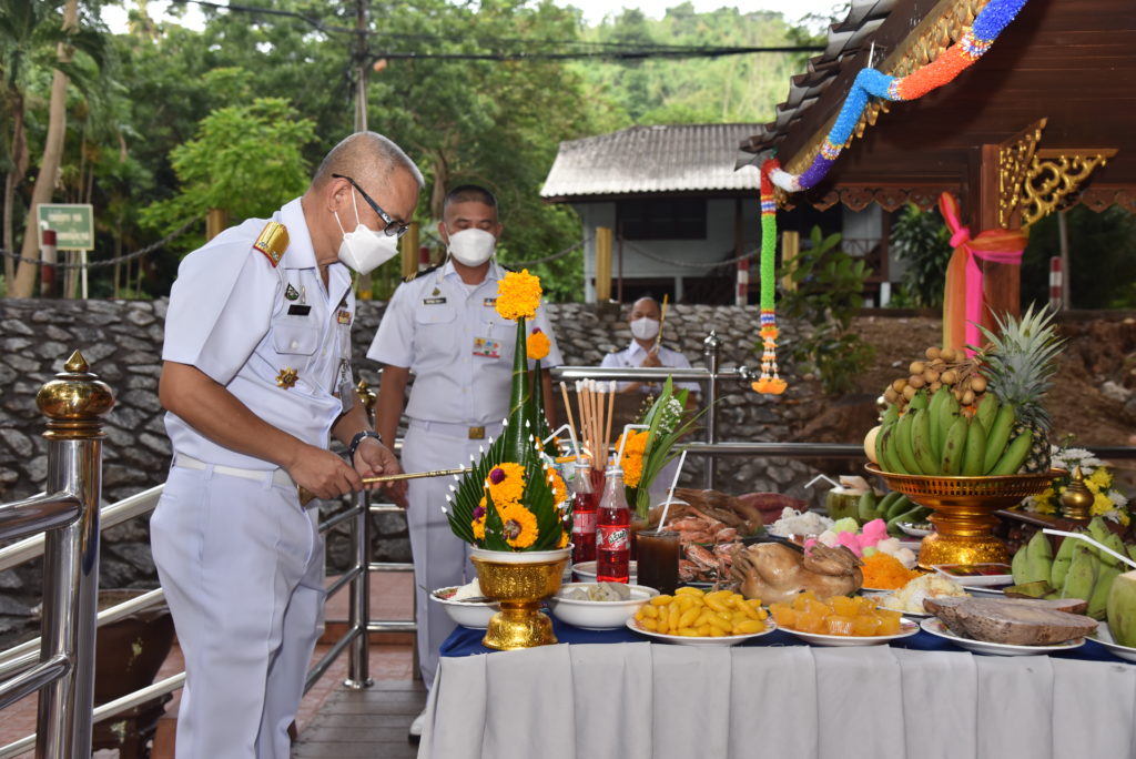 พลเรือตรี ขจิตร์ อุษณีษ์สวัสดิ์ชัย ผู้อำนวยโรงพยาบาลอาภากรเกียรติวงศ์ ฐท.สส. ประกอบพิธีสักการะพระอนุสาวรีย์พลเรือเอกพระเจ้าบรมวงศ์เธอ กรมหลวงชุมพรเขตอุดมศักดิ์ (หมอพร) ศาลเจ้าแม่แหลมเทียน ศาลเทพารักษ์ และศาลเจ้าพ่อสามเกลอ เนื่องในวาระดำรงตำแหน่ง ผู้อำนวยโรงพยาบาลอาภากรเกียรติวงศ์ ฐท.สส. เมื่อวันที่ ๕ ตุลาคม ๒๕๖๔