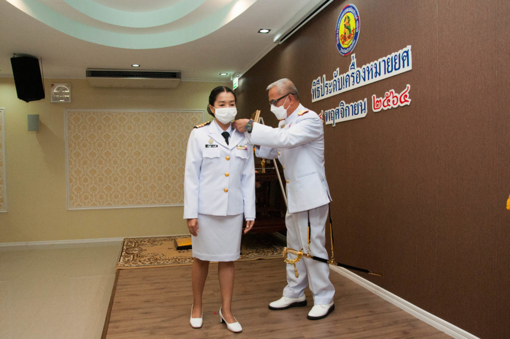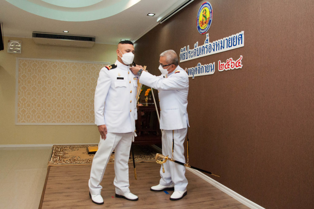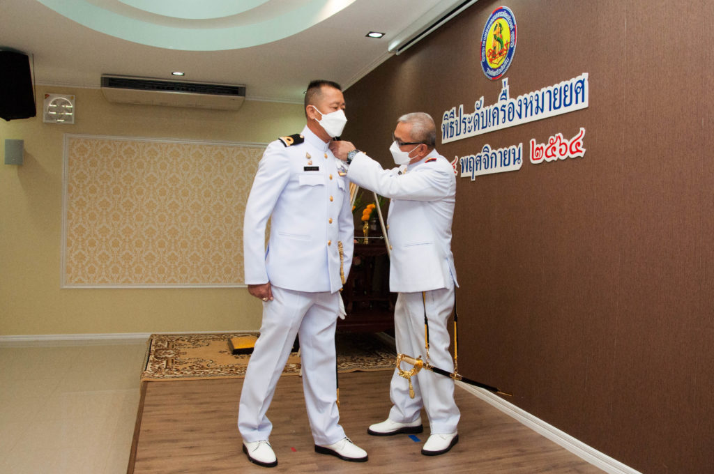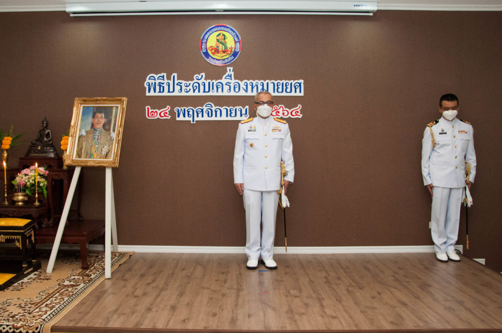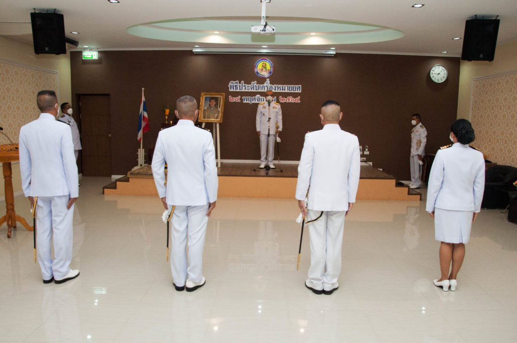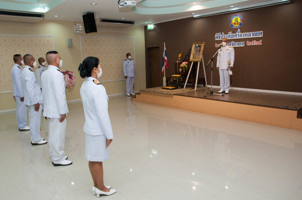 เมื่อ ๒๔ พ.ย.๖๔ พลเรือตรี ขจิตร์ อุษณีษ์สวัสดิ์ชัย ผู้อำนวยการโรงพยาบาลอาภากรเกียรติวงศ์ ฐานทัพเรือสัตหีบ เป็นประธานในพิธีประดับเครื่องหมายยศให้แก่ข้าราชการที่ได้รับการเลื่อนยศสูงขึ้น จำนวน ๔ นาย พร้อมทั้งกล่าวให้โอวาท ณ ห้องประชุมลุมพิกานนท์ / รพ.อาภากรเกียรติวงศ์ ฐท.สส. / By หน่วยขึ้นตรง จำนวนคนดู : 16