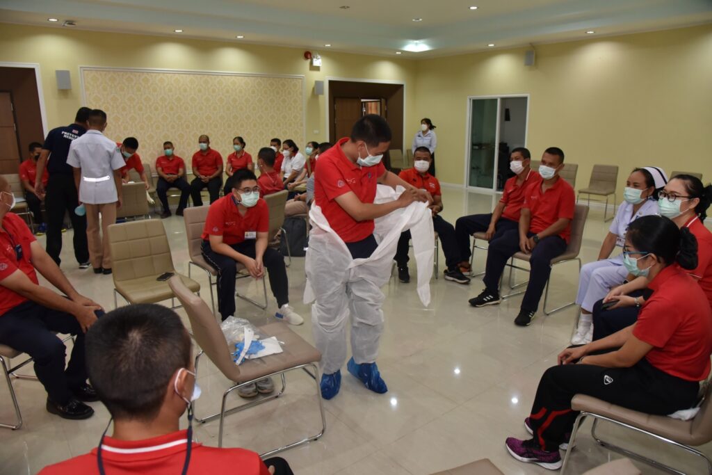 เมื่อ ๑๒ พ.ค.๖๕ พล.ร.ต.ขจิตร์ อุษณีษ์สวัสดิ์ชัย ผอ.รพ.อาภากรเกียรติวงศ์ ฐานทัพเรือสัตหีบ เป็นประธานในพิธีกล่าวเปิดการประชุมเชิงปฏิบัติการ เรื่อง การทบทวนแนวทางการใส่ชุดอุปกรณ์ป้องกันส่วนบุคคล PPE เพื่อให้ผู้เข้าร่วมประชุมได้รับความรู้ที่สามารถนำแนวทางการสวมใส่ชุดอุปกรณ์ป้องกันความปลอดภัยได้อย่างถูกต้องและมีประสิทธิภาพ ให้เป็นไปตามมาตรฐานหลักขององค์กรอนามัยโลก ณ ห้องประชุมลุมพิกานนท์ / รพ.อาภากรเกียรติวงศ์ ฐท.สส. / By ข่าวผู้บังคับบัญชา จำนวนคนดู : 6